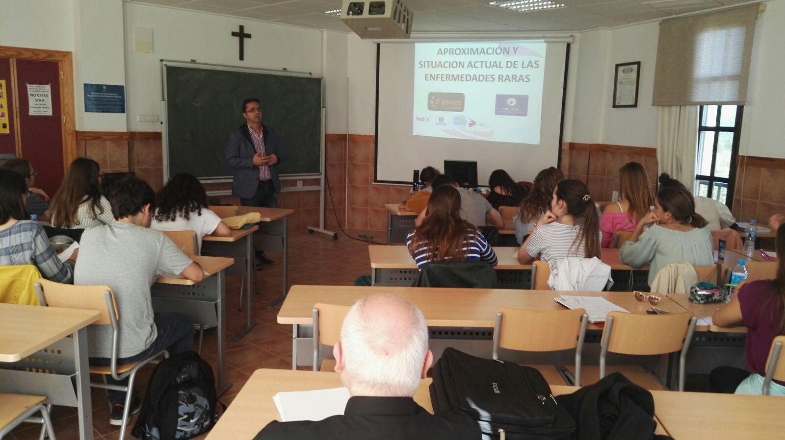 La Asociación de Enfermedades Raras D´Genes ha expuesto a alumnos de Medicina de la Universidad Católica San Antonio de Murcia (UCAM) la labor que desarrolla y la realidad de las personas que conviven con una patología poco frecuente.