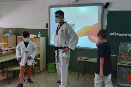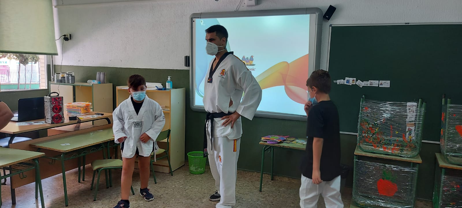 La Escuela de Verano Inclusiva de la Asociación de Enfermedades Raras de D´Genes en Mazarrón ha recibido la visita de todo un campeón de TaeKwondo.