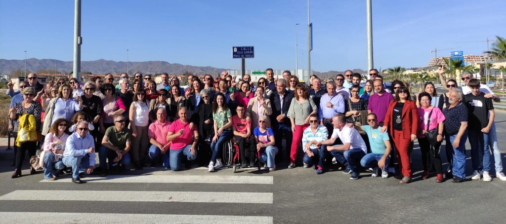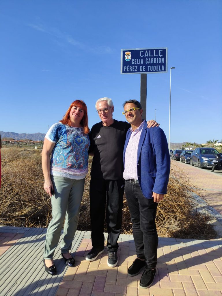 Amigos y familiares de los padres de Celia, Juan Carrión Tudela, presidente de D´Genes; y Naca Eulalia Pérez de Tudela, presidenta de AELIP, les arroparon en este emotivo acto, en el que se contó también con la asistencia de la alcaldesa de Águilas, Mari Carmen Moreno, y otros miembros de la Corporación municipal. También estuvieron presentes miembros de la directiva de D´Genes, entre ellos Inmaculada Hernández, promotora precisamente de la solicitud al Ayuntamiento de Águilas de la nominación a nombre de Celia Carrión de la calle.