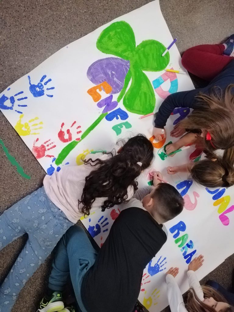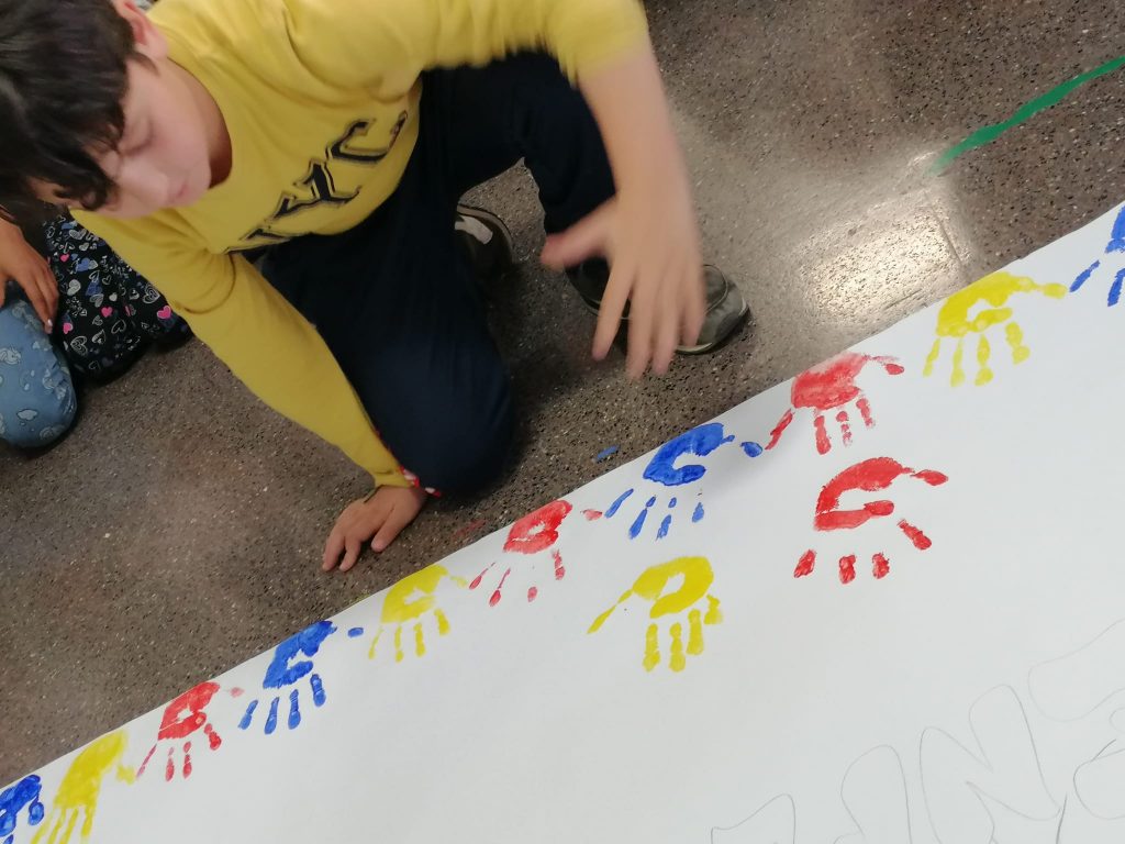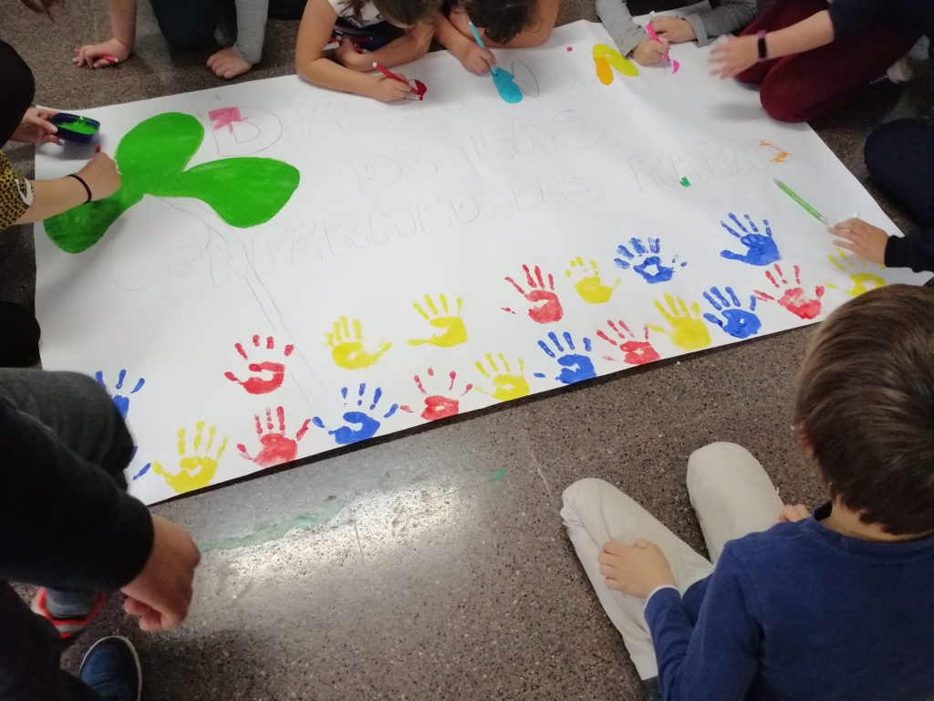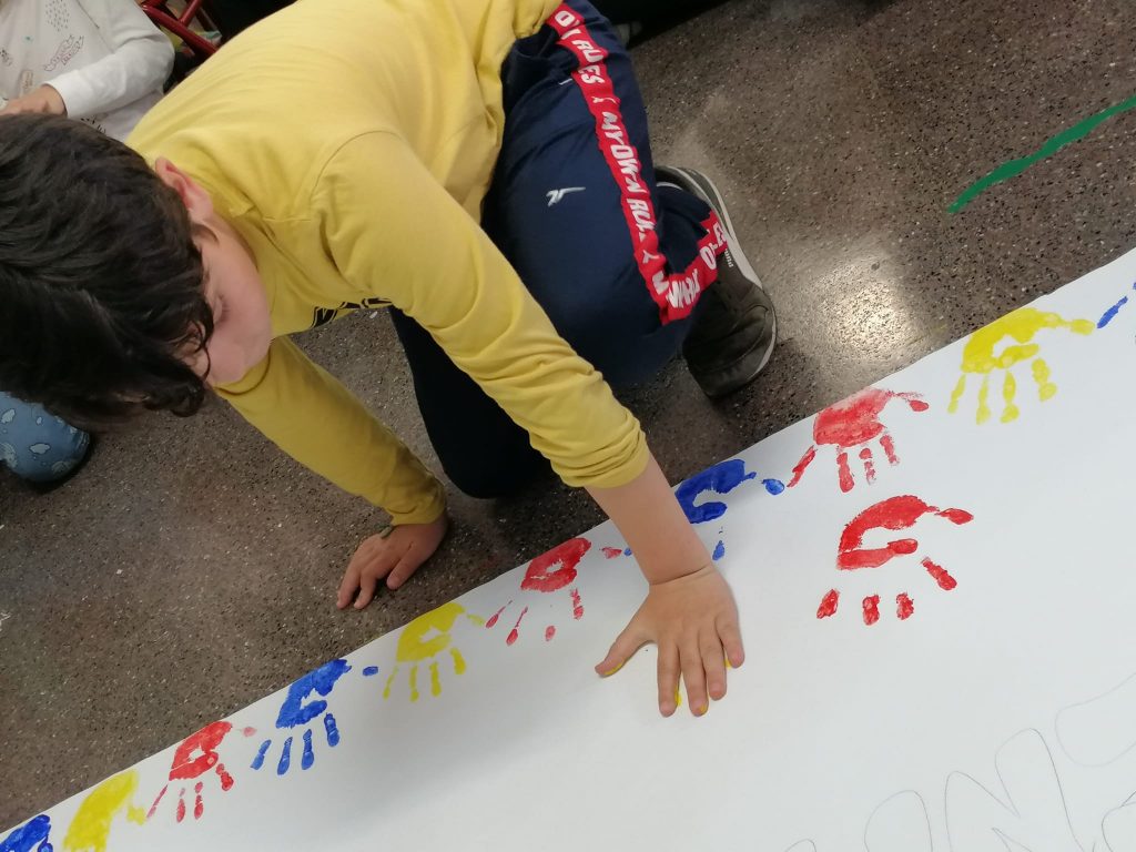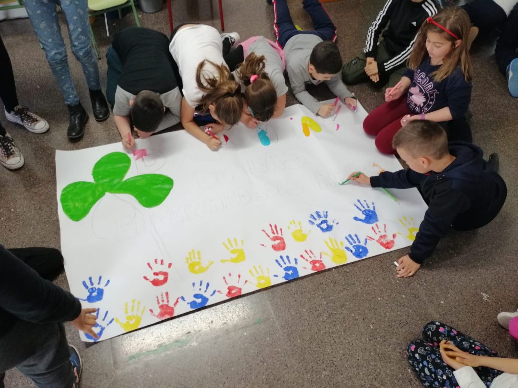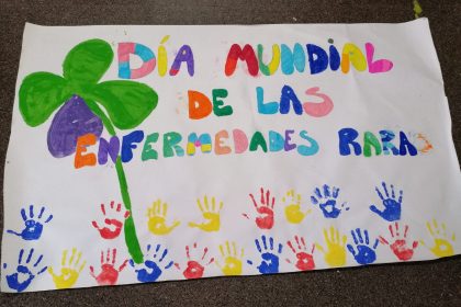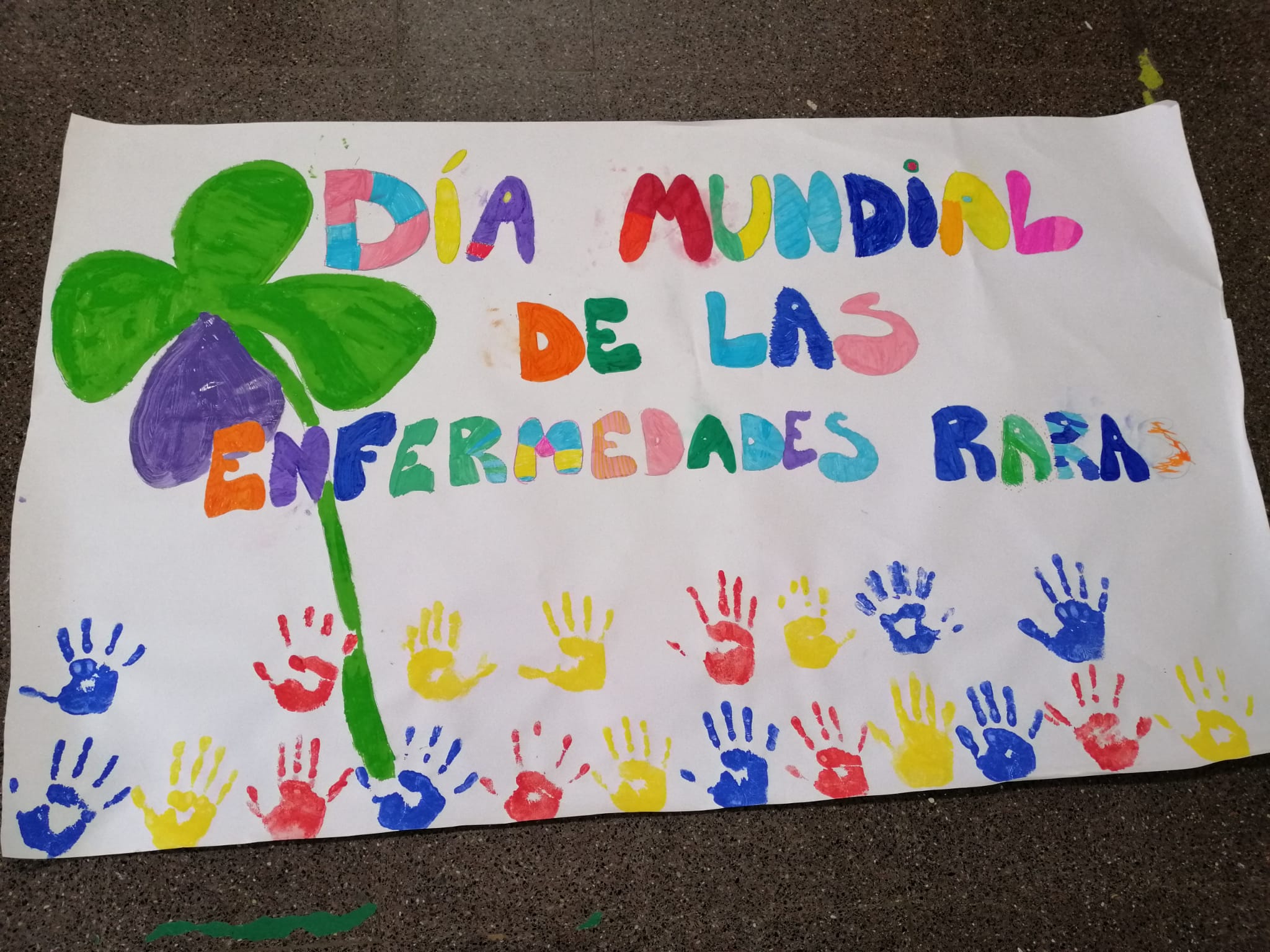 Además de explicarles qué son las enfermedades raras, los pequeños tuvieron la oportunidad de decorar un mural gigante con un trébol de cuatro hojas y sobre el que impusieron sus manos con pinturas de colores, bajo la leyenda Día Mundial de las Enfermedades Raras.