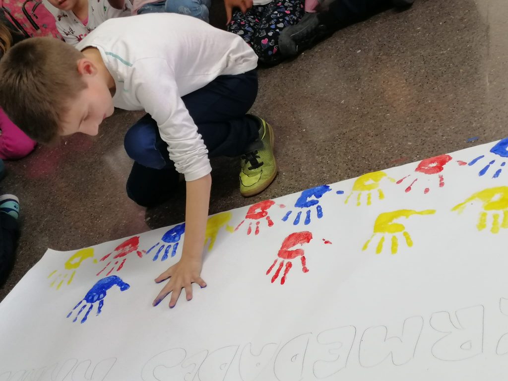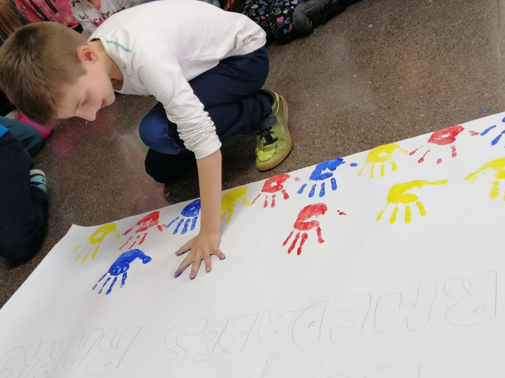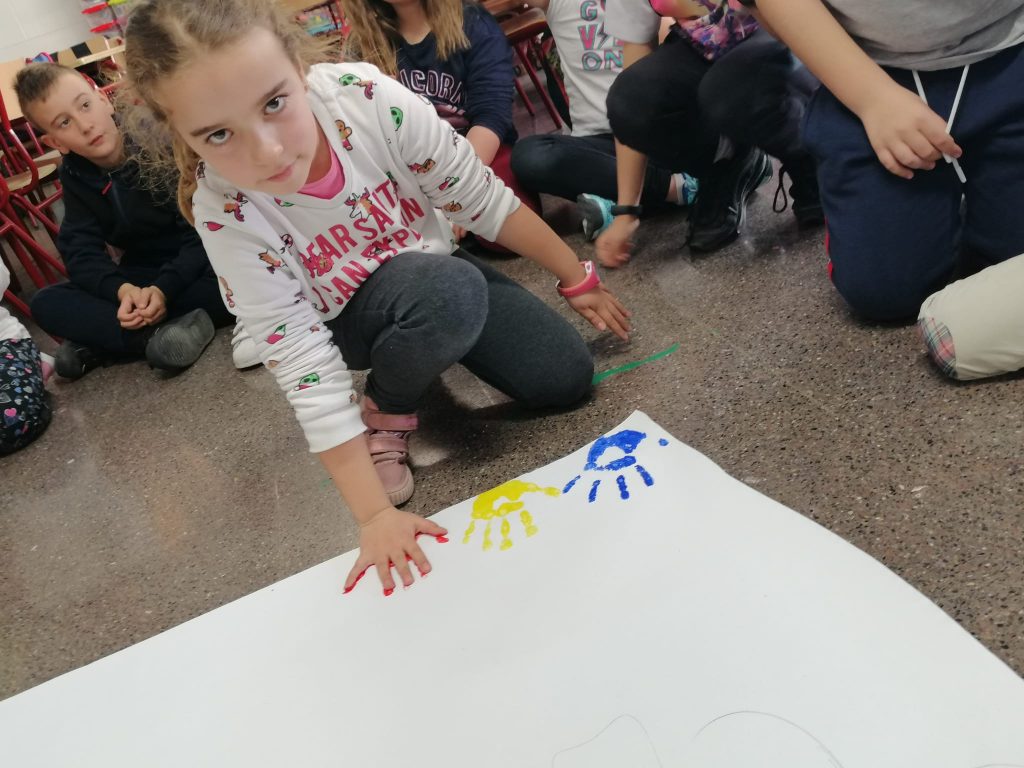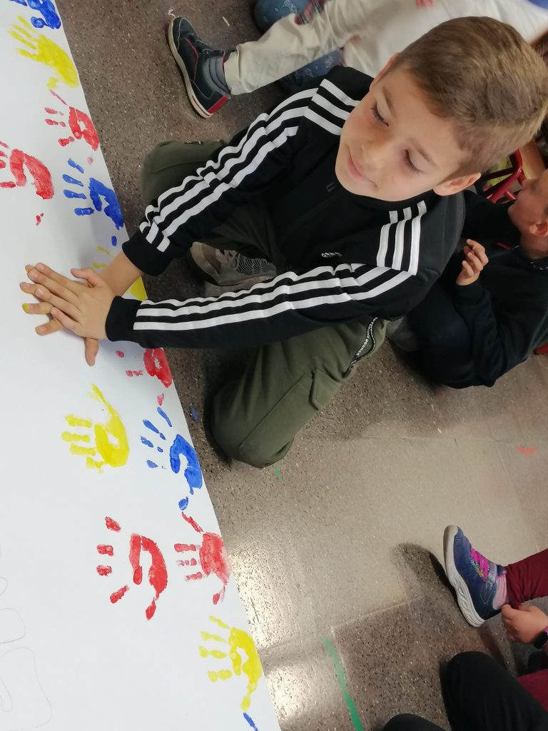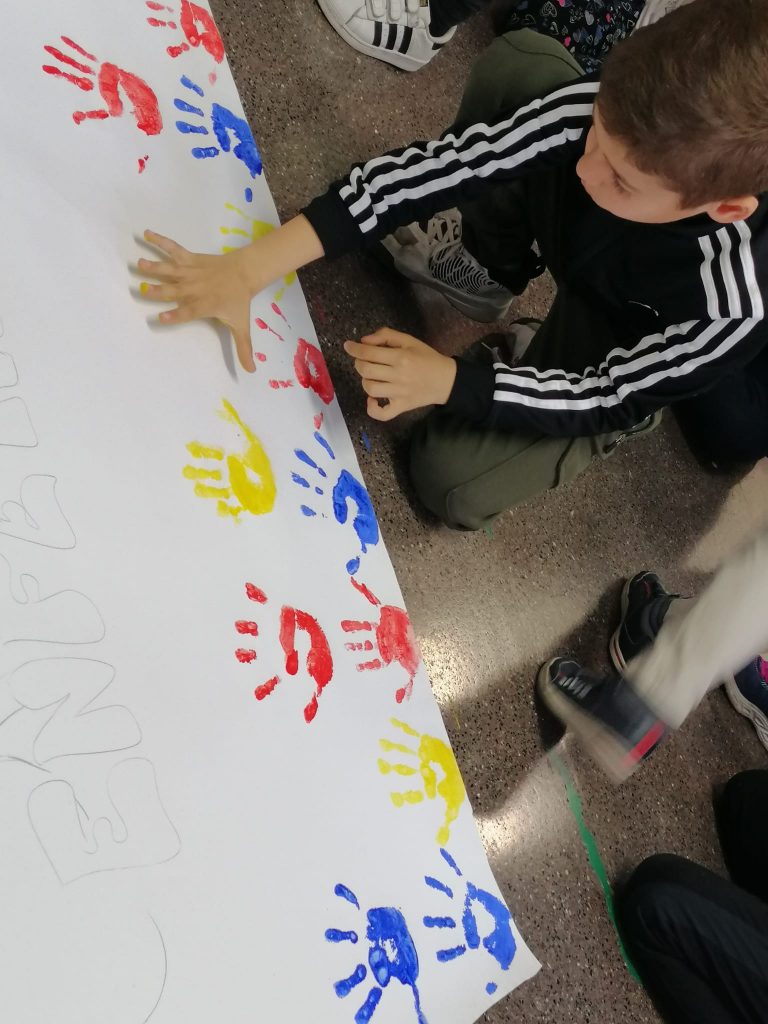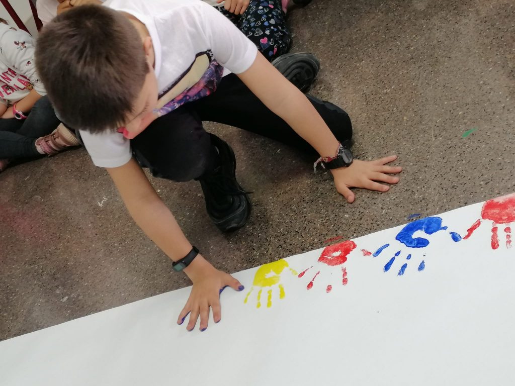 Además de explicarles qué son las enfermedades raras, los pequeños tuvieron la oportunidad de decorar un mural gigante con un trébol de cuatro hojas y sobre el que impusieron sus manos con pinturas de colores, bajo la leyenda Día Mundial de las Enfermedades Raras.