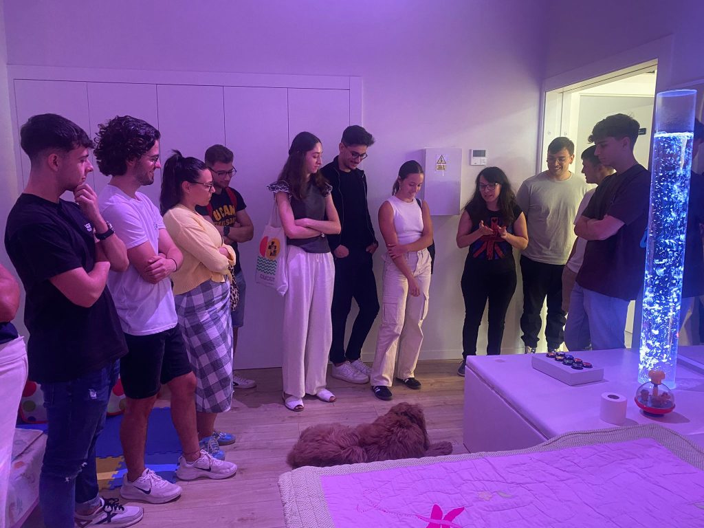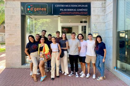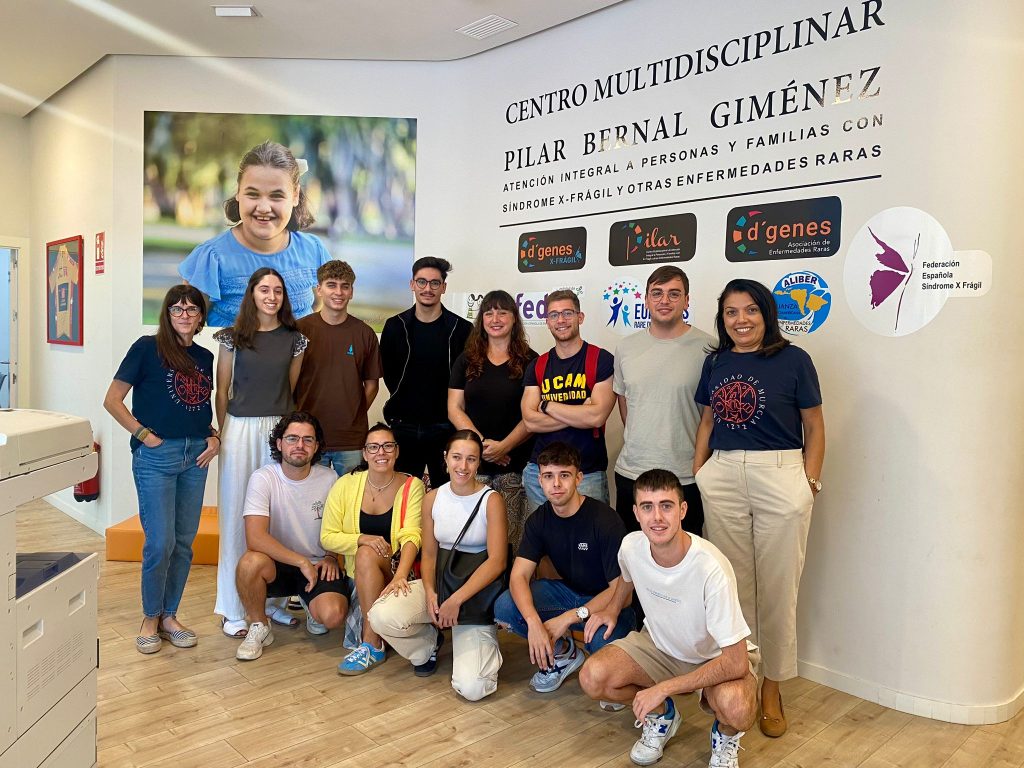 Un grupo de alumnos de 4º curso del Grado de Fisioterapia de la Universidad de Murcia han visitado el Centro Multidisciplinar de Atención Integral a Personas y Familias con Síndrome X Frágil y otras enfermedades raras «Pilar Bernal Giménez» de la Asociación de Enfermedades Raras D´Genes, ubicado en Murcia, para conocer la asociación y las necesidades de las personas que padecen enfermedades poco frecuentes.