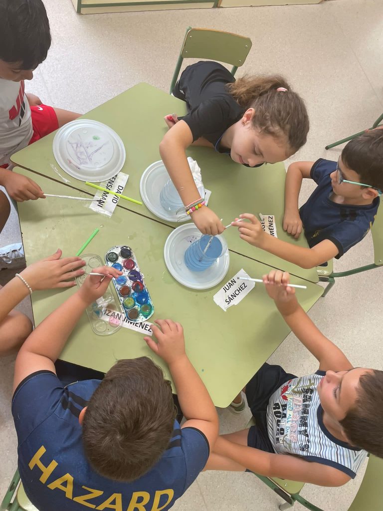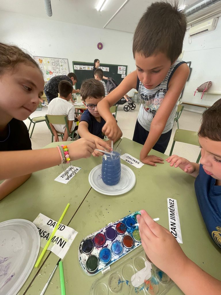 Sobre estas líneas, imágenes de actividades llevadas a cabo en los talleres llevados a cabo en el CEIP La Cañadica
