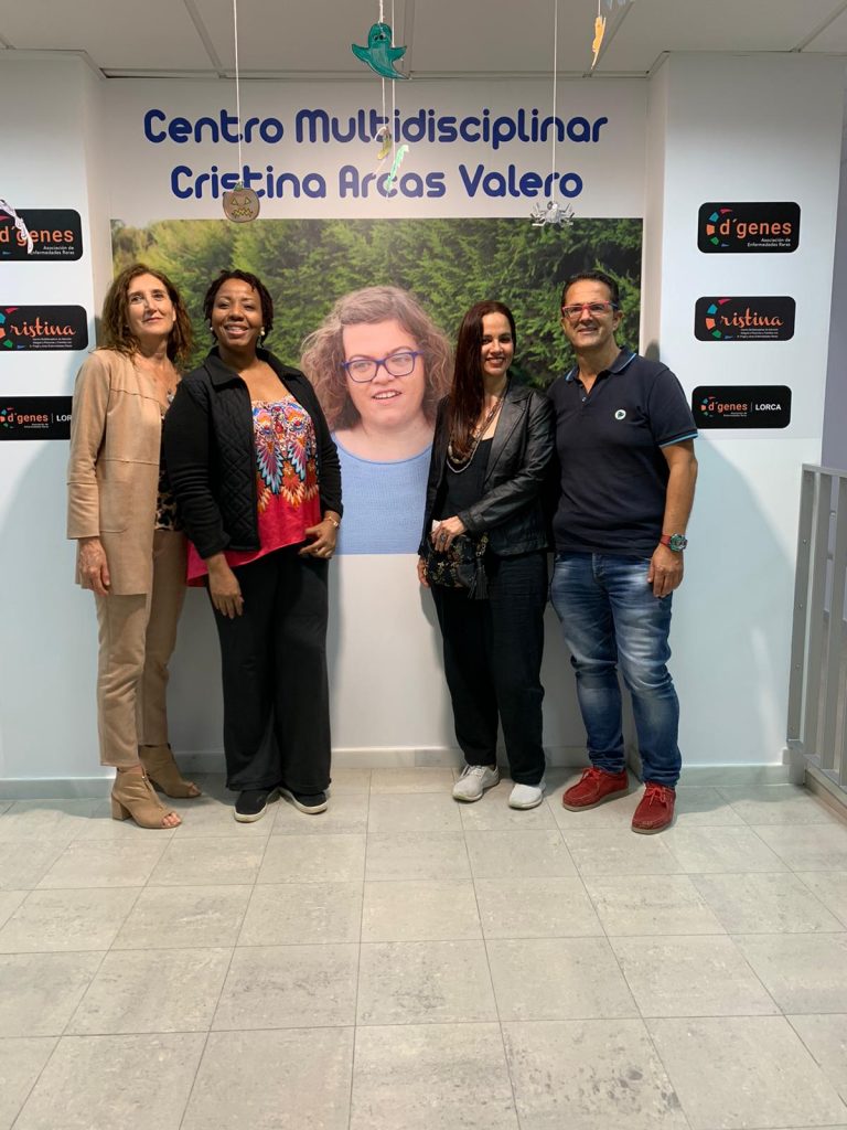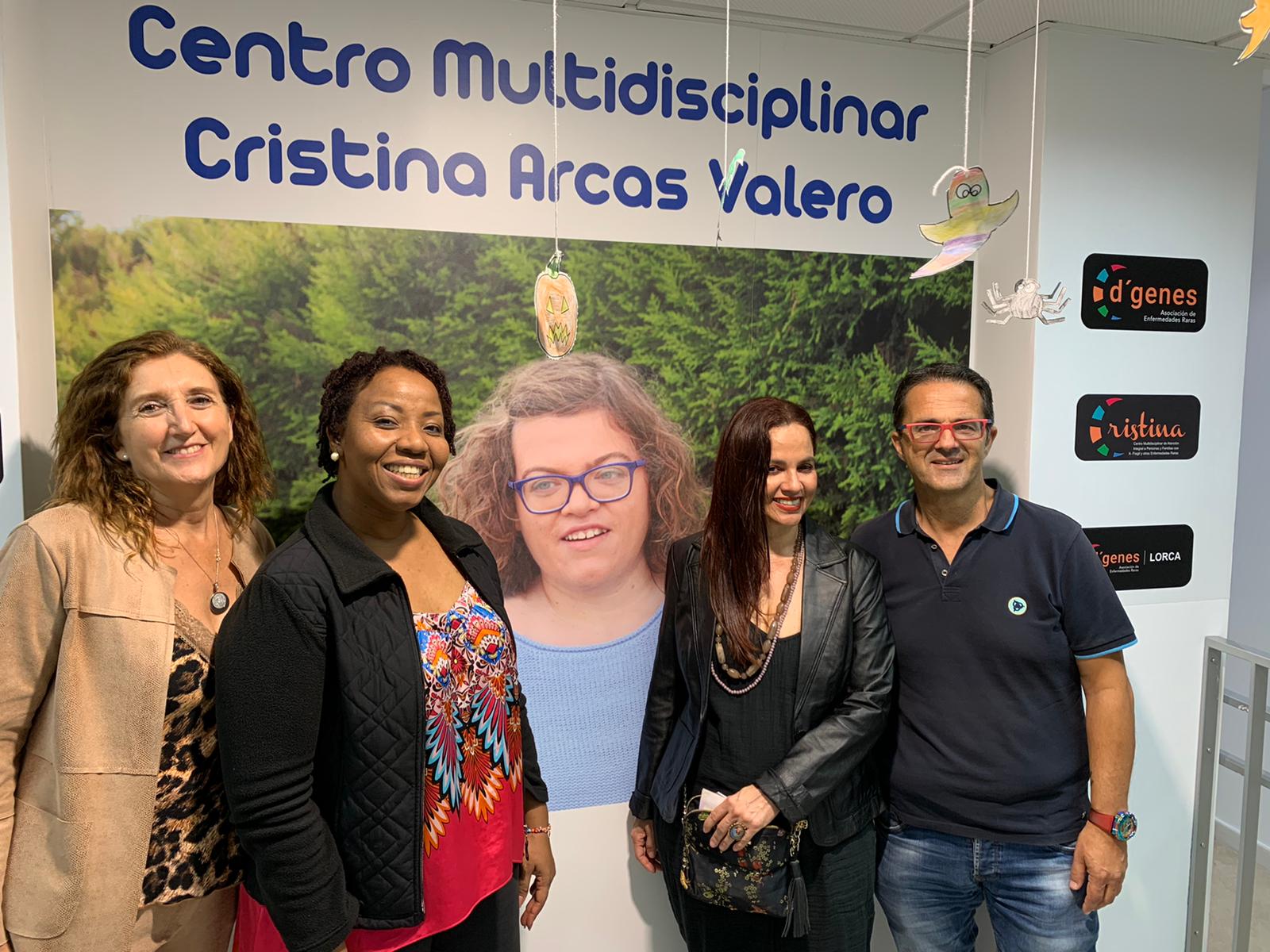 La Fundación Ayoudas Panamá ha visitado el Centro Multidisciplinar de atención integral a personas con enfermedades raras y sin diagnóstico «Cristina Arcas Valero» de Lorca. La directora ejecutiva de Ayoudas Panamá, Erika Otero, y la trabajadora social de la misma entidad, Vanessa Valencia, han conocido esta infraestructura y han atendido las explicaciones ofrecidas por la vocal de la junta directiva de D´Genes Rosa Valero, quien les ha explicado el funcionamiento del mismo y los servicios que en él se prestan.