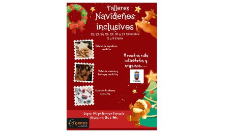 El Ayuntamiento de Mazarrón, a través de la Concejalía de Política Social, y la Asociación D’Genes han presentado una nueva edición de los Talleres navideños inclusivos, que se desarrollarán del 22 de diciembre al 5 de enero, los días laborables, en el Colegio Francisco Caparrós, en horario de 9:00 a 14:00 horas. La actividad ha sido presentada