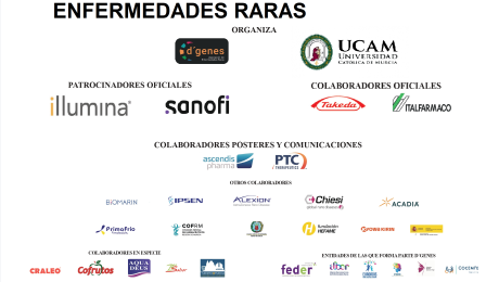 Una veintena de entidades y empresas farmacéuticas patrocinan o colaboran con el XVIII Congreso Internacional de Enfermedades Raras que, organizado por la Asociación de Enfermedades Raras D´Genes con la colaboración de la Universidad Católica San Antonio de Murcia (UCAM), se celebra los días 20 y 21 de noviembre. Bajo el lema “Trabajando juntos, unidos por los