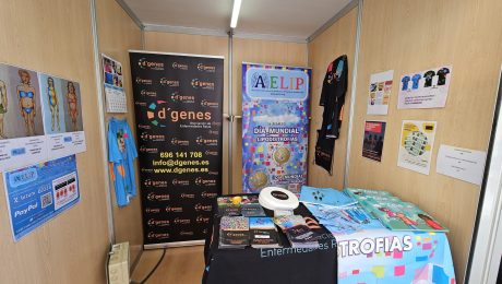 La Asociación de Enfermedades Raras D´Genes participa en la XXIV Muestra Internacional de Voluntariado de la Universidad Católica San Antonio de Murcia. D´Genes comparte, junto con la Asociación Internacional de Familiares y Afectados de Lipodistrofias (AELIP) uno de los stands de la feria, ubicados en el Paseo Alfonso X El Sabio de Murcia. La muestra
