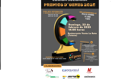 La Asociación de Enfermedades Raras D´Genes entrega el día 23 de febrero sus Premios 2025 en el transcurso de una comida solidaria que tendrá lugar a las 14:00 horas en el Restaurante Venta La Rata de Totana. En total se entregarán 11 galardones repartido en diez categorías, ya que en una se darán dos premios, con