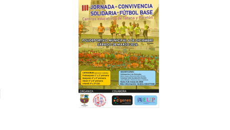 El Polideportivo Municipal 6 de Diciembre de Totana acogerá el próximo sábado 28 de marzo la III Jornada de Convivencia Solidaria de Fútbol Base, una iniciativa que reunirá a alumnado de distintos centros educativos de Totana y El Paretón en torno al deporte, la convivencia y la solidaridad. La jornada está dirigida a jóvenes deportistas