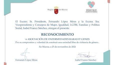 D´Genes recibe el diploma acreditativo de su adhesión a la iniciativa Empresas por una sociedad libre de violencia de género de la Comunidad Autónoma de la Región de Murcia
