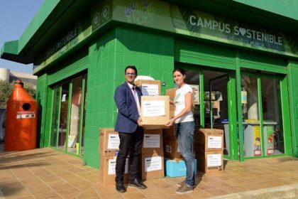 Campus Sostenible de la Universidad de Murcia ha hecho entrega de la Asociación de Enfermedades Raras D´Genes de los tapones recogidos en el marco de una campaña de reciclaje solidario.