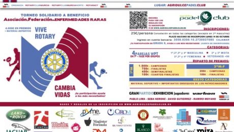 El Club Rotary Murcia junto al Club Rotary Murcia Norte y al Club Rotaract de jóvenes rotarios, organizarán los próximos días 18, 19 y 20 de Octubre un torneo de pádel solidario a beneficio de las personas con una enfermedad rara.