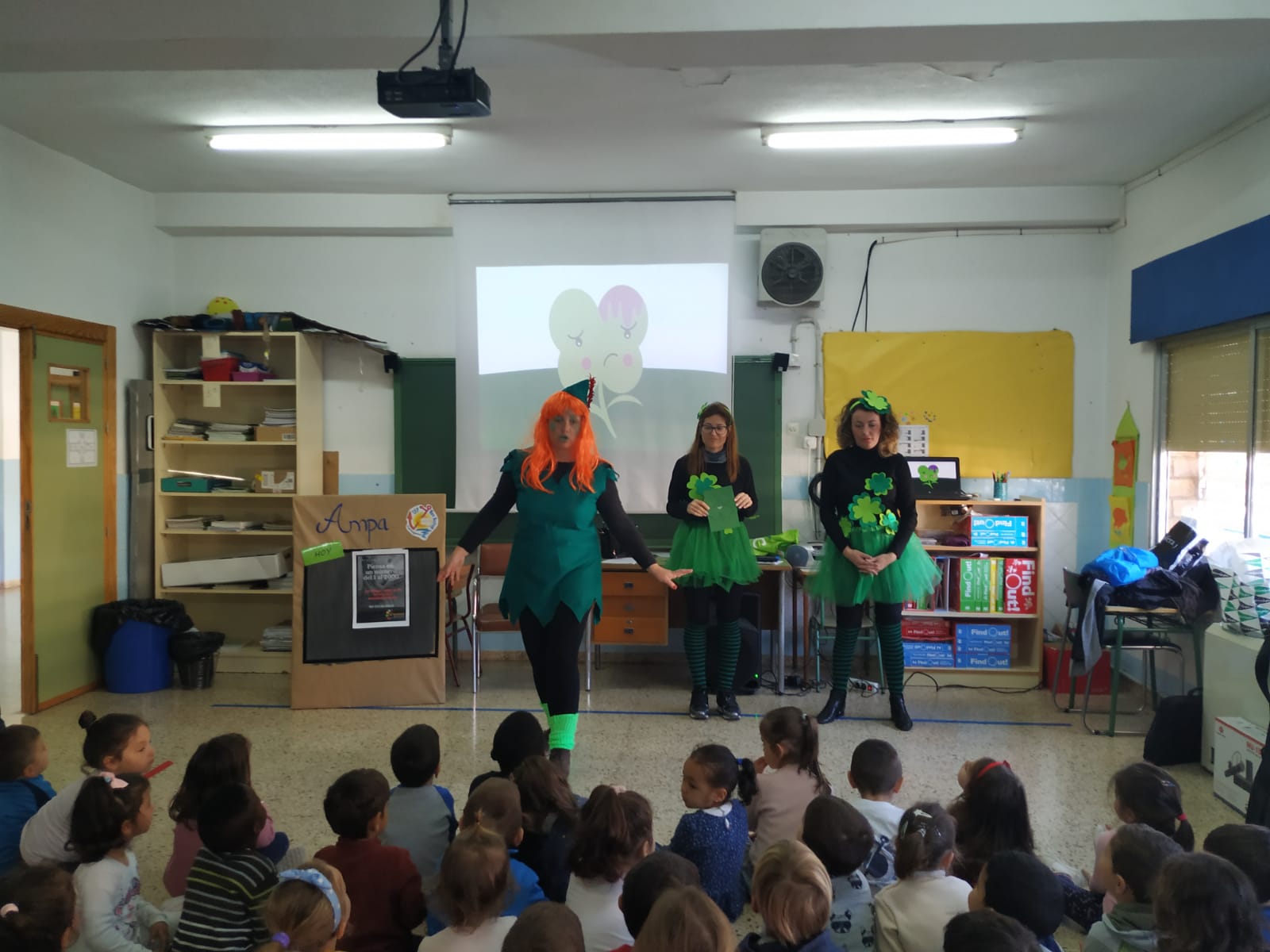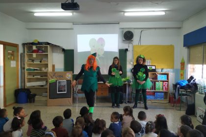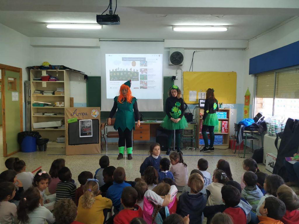 Los alumnos de Educación Infantil y 1º de Primaria han disfrutado de un cuentacuentos del relato Federito, mientras que los de 2ª, 3º y 4º de Primaria lo han hecho con uno titulado La Cigüeña añil.