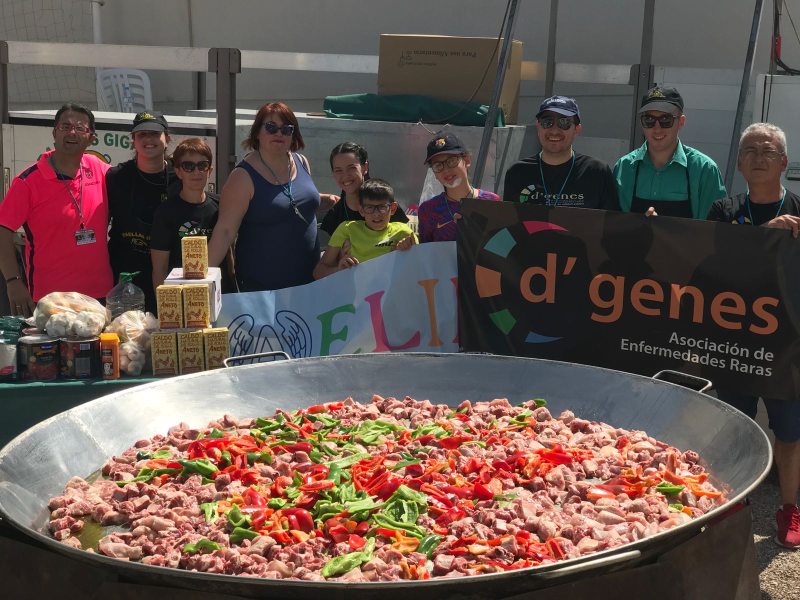 Así, D’Genes quiere dar las gracias Carrefour, Paellas El Tirol, Aneto, Moremar, Cañizares, Bedia, Granisa, Panadería El Paretón Vigala, que aportaron productos para ser dispensados en el chiringuito que se montó o sirvieron como ingredientes para cocinar una gran paella. Los beneficios obtenidos de este servicio de chiringuito se han destinado a las asociaciones D’Genes y AELIP.