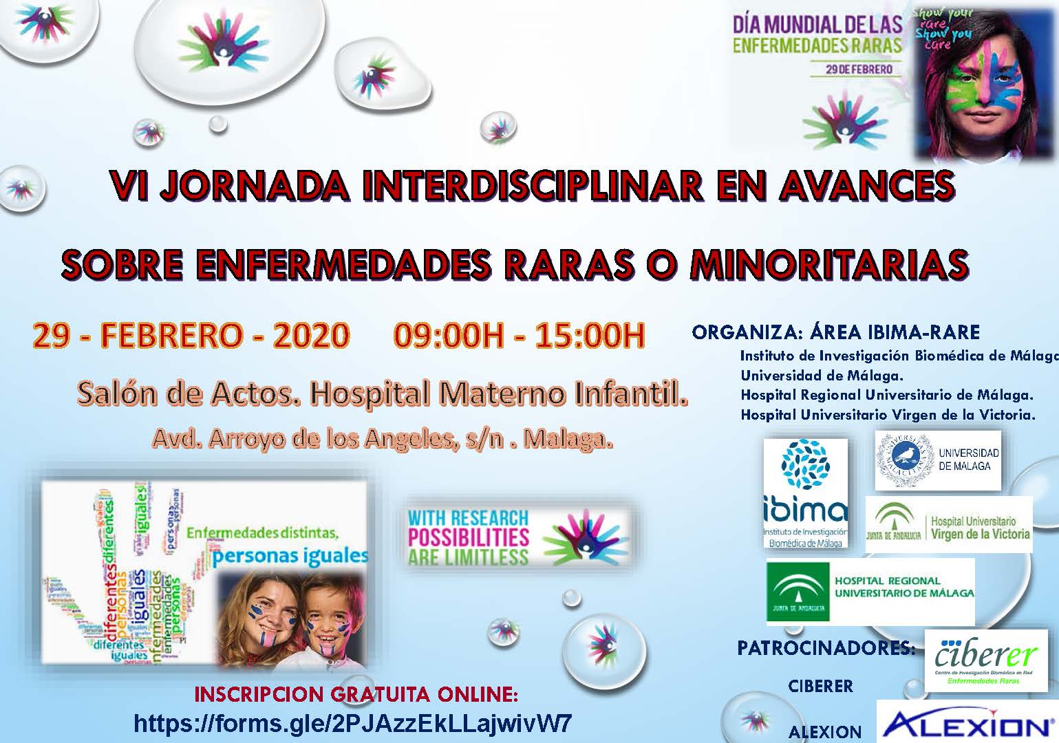 Esta jornada está organizada por Área IBIMA-Rare, Instituto de Investigación Biomédica de Málaga, Universidad de Málaga, Hospital Regional Universitario de Málaga y Hospital Universitario Virgen de la Victoria, y entre sus patrocinadorees figura el Centro de Investigación Biomédica en Red (CIBERER).