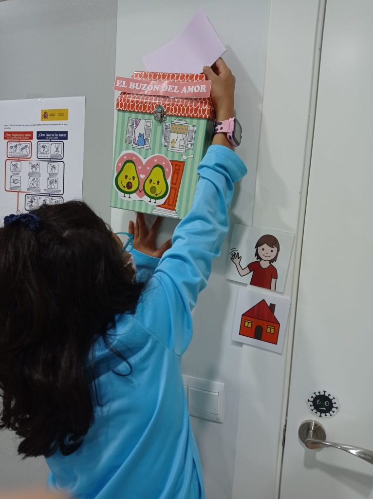 En el Centro Multidisciplinar «Celia Carrión Pérez de Tudela» de Totana, niños y jóvenes han depositado en el buzón cartas y dibujos que han realizado y trabajado en sesiones con las profesionales de estimulación cognitiva o logopedia.