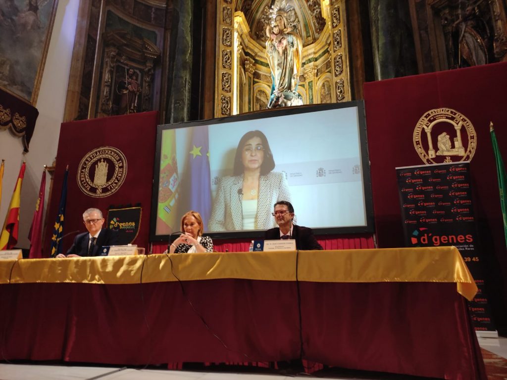 El consejero de Salud de la Región de Murcia, Juan José Pedreño; la rectora de la UCAM, Josefina García; y el presidente de D´Genes, Juan Carrión, han inaugurado las jornadas, en un acto en el que se han podido escuchar también las palabras enviadas a través de un video por la ministra de Sanidad, Carolina Darias.