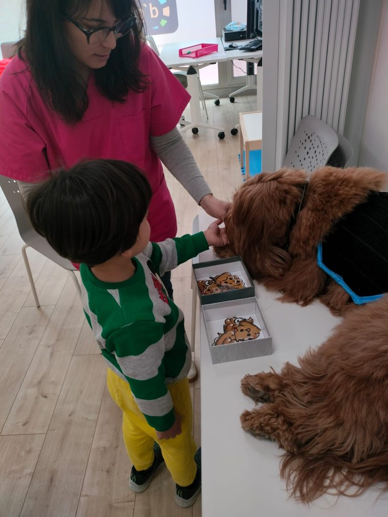 Este servicio, que pretende aunar las características de un respiro familiar que incluye terapia asistida con animal, se dirige a usuarios con enfermedades raras, sin diagnóstico y discapacidad. Luna, la perra de raza Australian Cobberdog de tamaño mediano y color rojo que ejerce como terapeuta canina en la asociación y que llegó a la misma gracias al apoyo y la colaboración de la Federación Española de Enfermedades Raras (FEDER) y Dogking, toma parte en las sesiones.