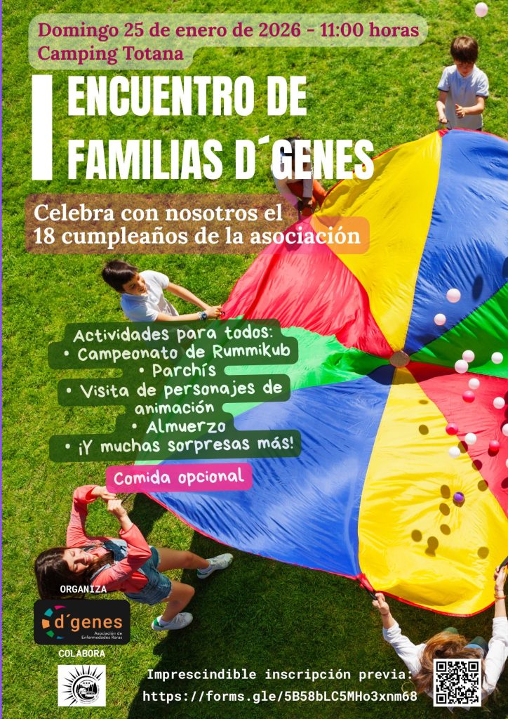 El próximo domingo, 25 de enero, la Asociación de Enfermedades Raras D´Genes ha organizado una cita muy especial en Totana : el I Encuentro de Familias y celebración del 18 cumpleaños de la asociación.