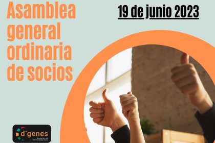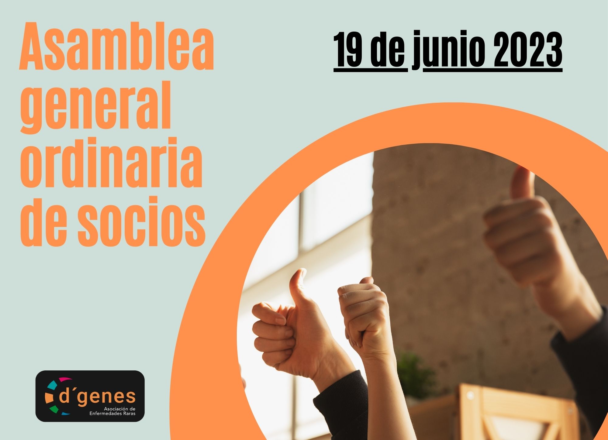 La Asociación de Enfermedades Raras D´Genes celebrará su Asamblea General Ordinaria el próximo 19 de junio de 2023 en el Centro Multidisciplinar “Celia Carrión Pérez de Tudela”, ubicado en la calle San Cristóbal, 7, 30850 Totana-Murcia, a las 19,00 horas en primera convocatoria y a las 19,30 horas en segunda convocatoria, con el siguiente orden del día: