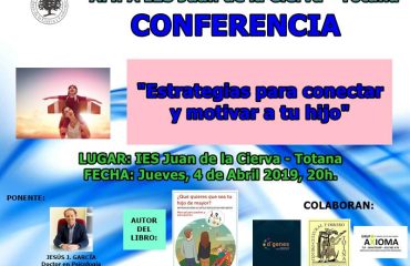 El próximo jueves, 4 de abril, tendrá lugar en el IES Juan de la Cierva de Totana una conferencia sobre estrategias para conectar y motivar a los hijos, que cuenta con la colaboración de D´Genes
