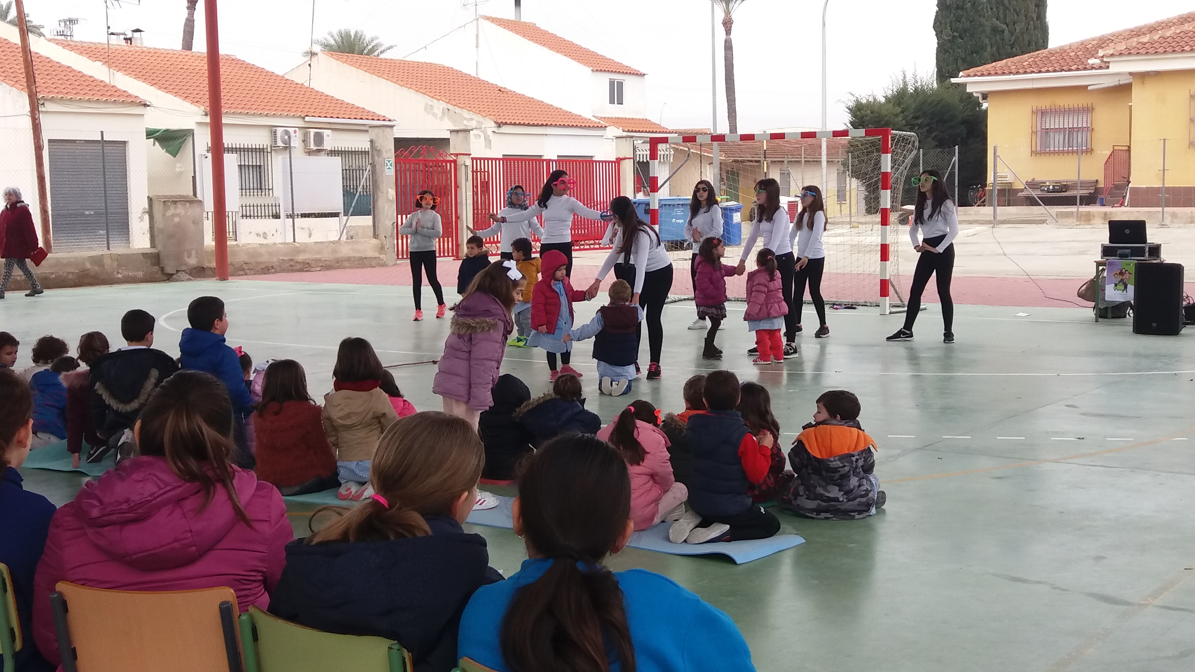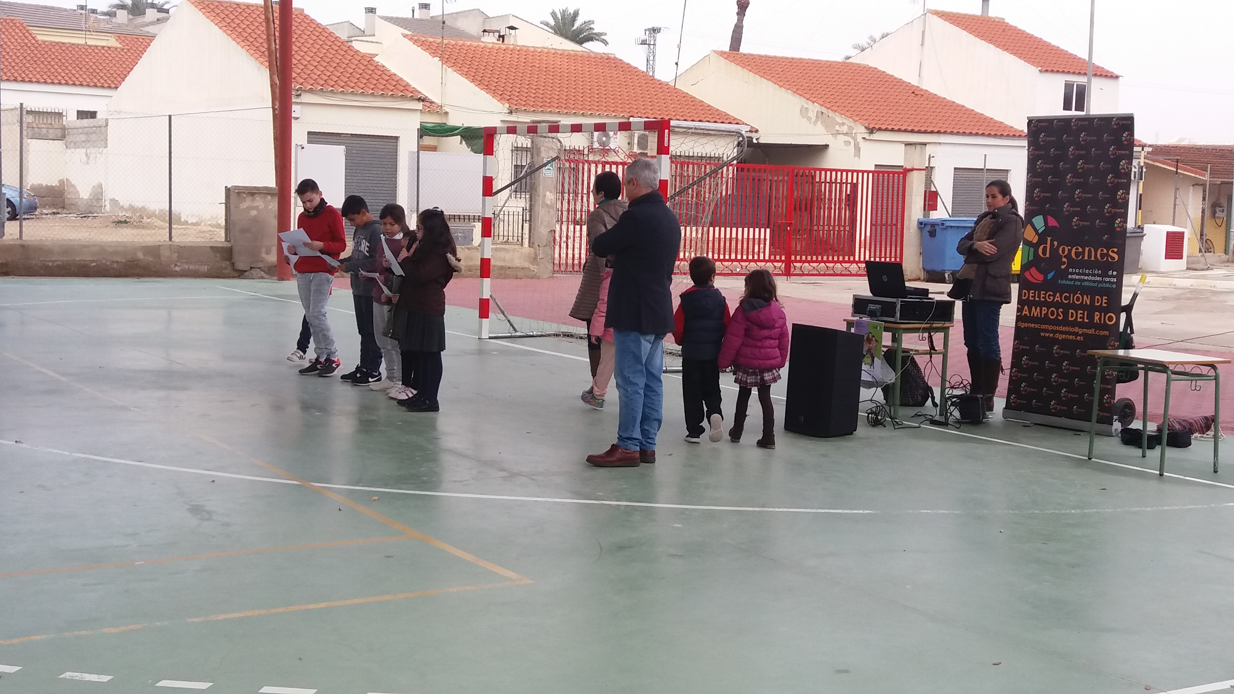 Todos los alumnos del centro educativo se reunieron en el patio del colegio junto al director, Victoriano Fernández, y resto de profesorado; la Concejala de Asuntos Sociales, María Antonia López; y una representación de la delegación D´Genes Campos del Río.