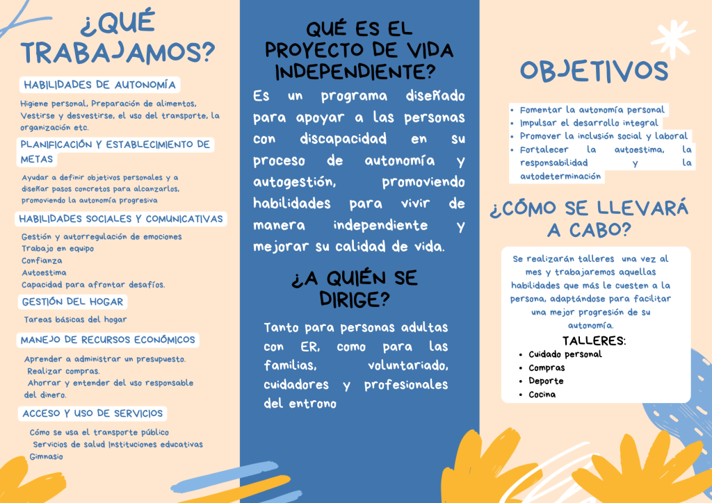 Las acciones enmarcadas en este proyecto están dirigidas tanto a personas adultas con enfermedades raras, como a familias, voluntarios, cuidadores y profesionales del entorno. Los objetivos son fomentar la autonomía personal, impulsar el desarrollo integral, promover la inclusión social y laboral y fortalecer la autoestima, la responsabilidad y la autodeterminación.