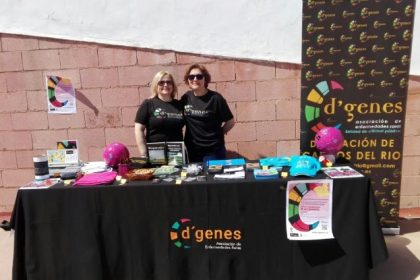 Miembros de la delegación de D´Genes en Campos del Río han instalado un expositor desde el que se ha ofrecido información sobre la asociación y lo que suponen las enfermedades raras en el día a día de afectados y familias. También se han puesto a la venta diverso material del que dispone la asociación para su venta, como calendarios y balones solidarios, gorras, camisetas…