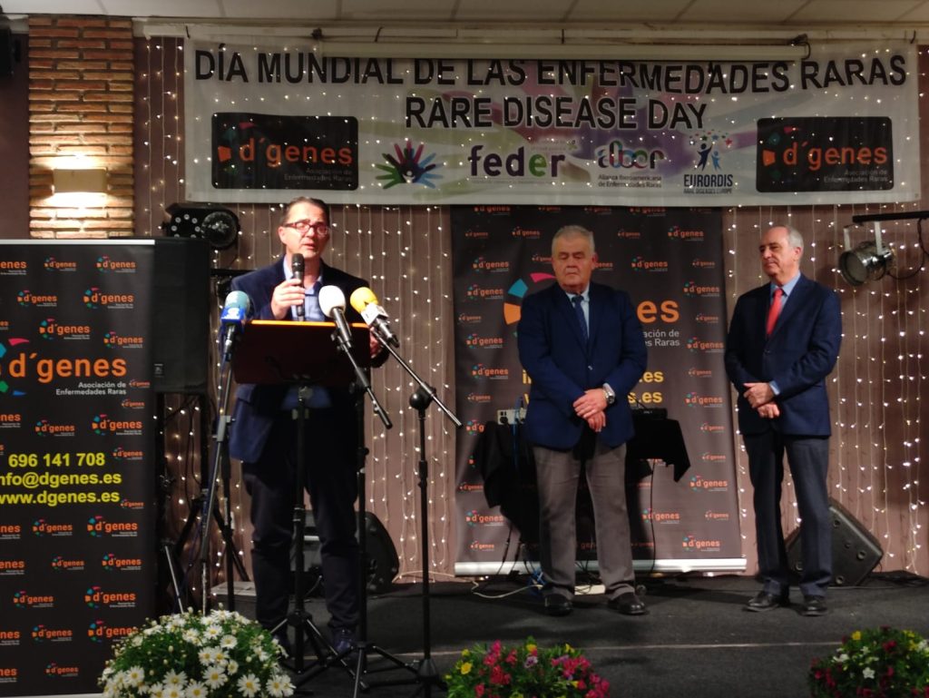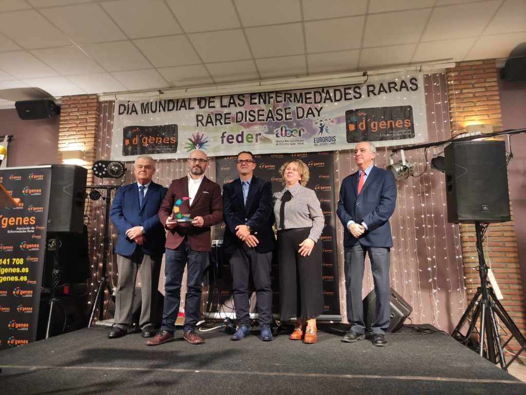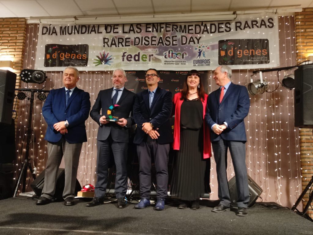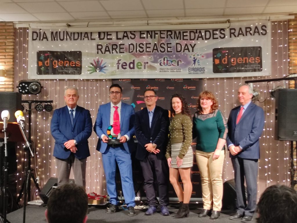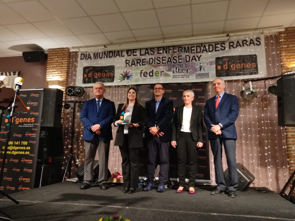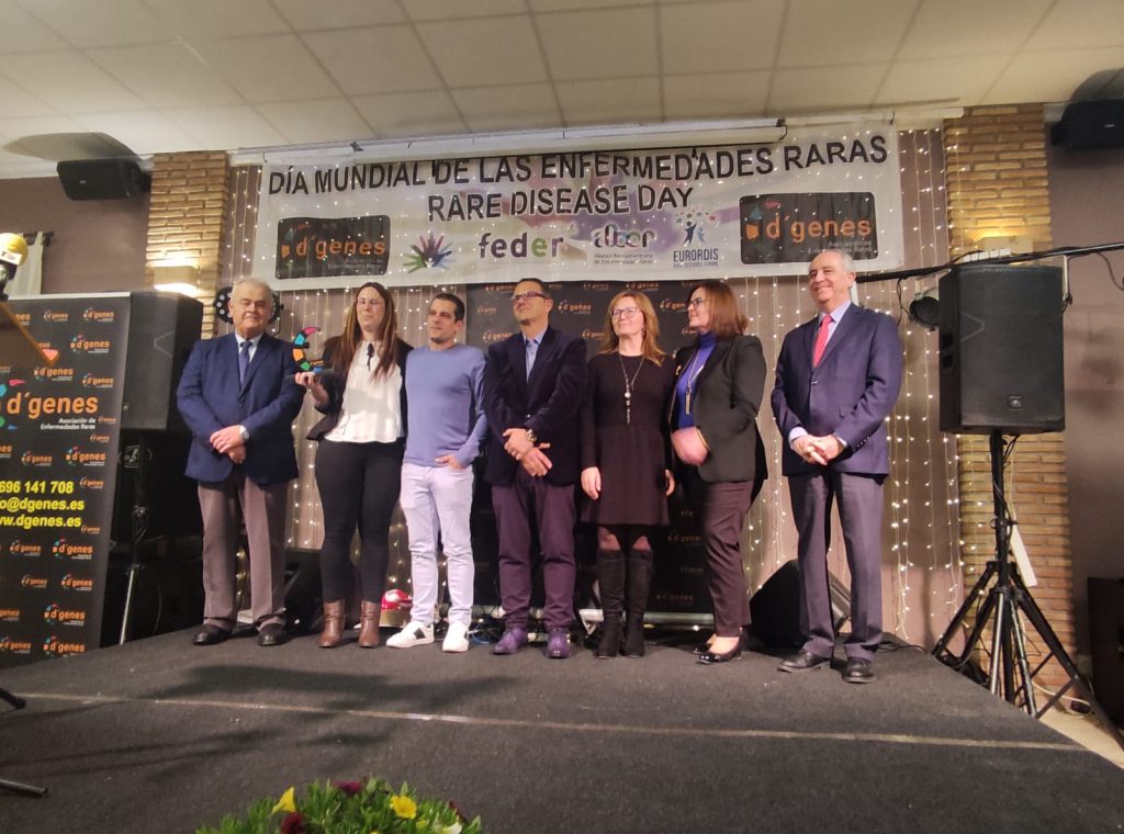 Por último, el Premio Día Mundial de las Enfermedades Raras fue entregado por el presidente de D´Genes a Conchita Ruiz Caballero, consejera de Política Social, Familias e Igualdad de la Comunidad Autónoma de la Región de Murcia, por su apoyo al colectivo de personas y familias que conviven con patologías poco frecuentes y el impulso de la atención temprana en la Región de Mucia.