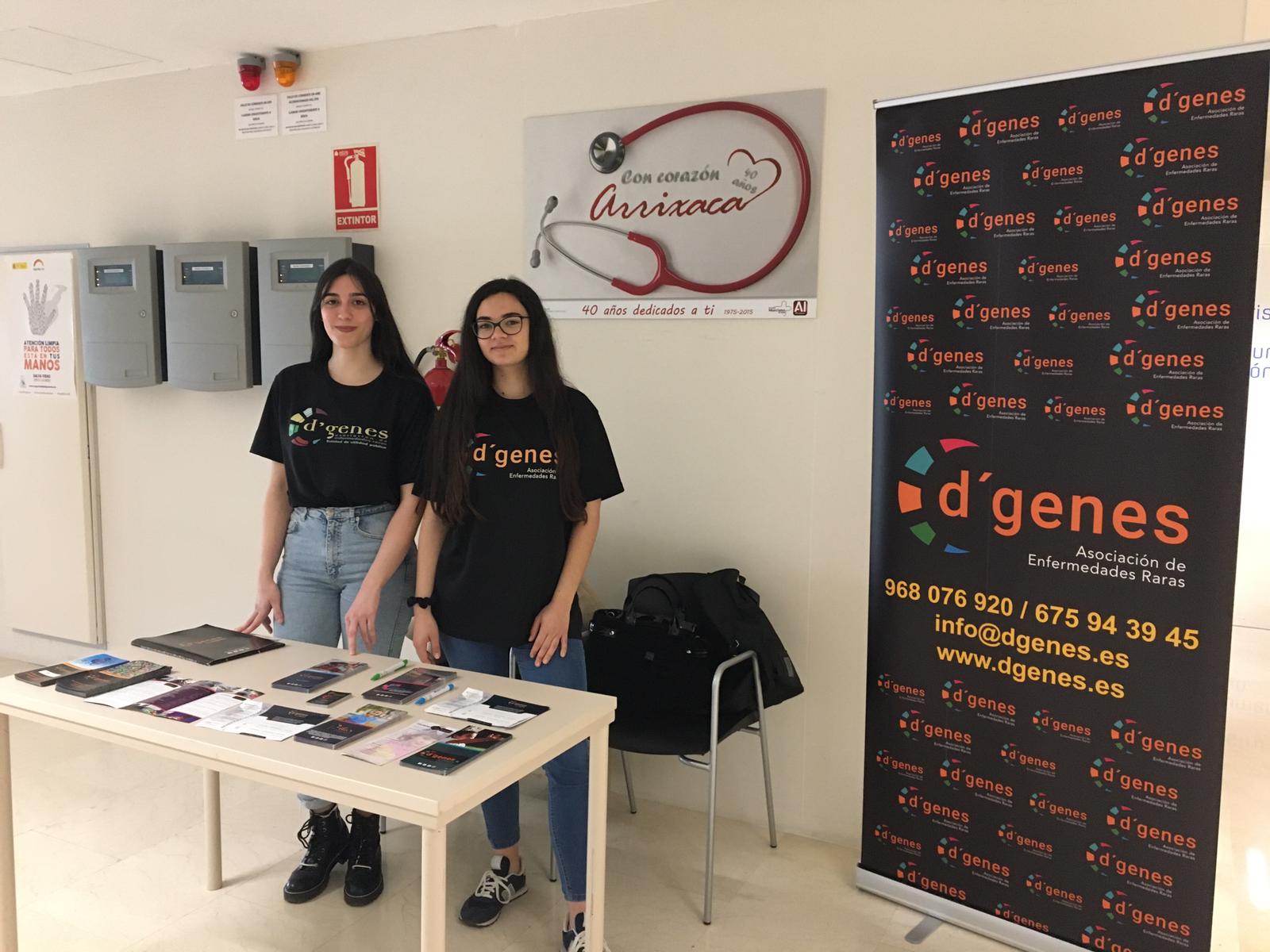 La Asociación de Enfermedades Raras D´Genes ha instalado una mesa informativa en el Hospital Clínico Universitario Virgen de la Arrixaca con motivo de la celebración del Día Mundial de las Enfermedades Raras que se conmemora mañana, 29 de febrero.