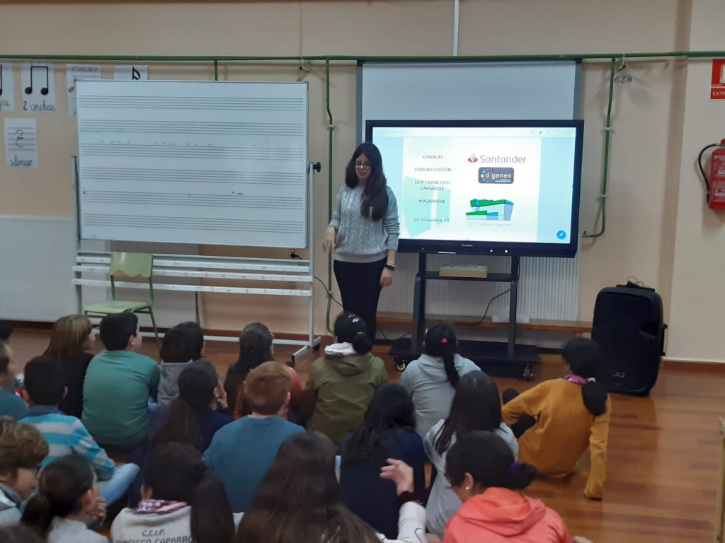 La Asociación de Enfermedades Raras D´Genes ha impartido charlas de sensibilización sobre las patologías poco frecuentes a alumnos del colegio «Francisco Caparrós» de Mazarrón con motivo del Día de la Discapacidad que se conmemoraba el pasado 3 de diciembre.