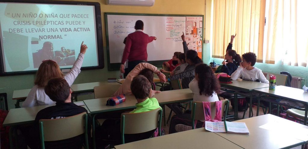 En la segunda parte de la sesión se enfocó el tema de la epilepsia y sus características. Se realizaron distintas dinámicas de grupo en las que el alumnado participó mostrando interés. Además, se hizo una simulación de una crisis epiléptica y las pautas a realizar ante ella.