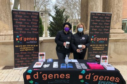 La Asociación de Enfermedades Raras D´Genes ha estado dando visibilidad a las patologías poco frecuentes en Lorca. Miembros de la asociación han montado una mesa informativa en la Alameda de la Constitución con motivo del Día Mundial de las Enfermedades Raras que se celebra el 28 de febrero.