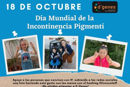 Hoy, 18 de octubre, se conmemora el Día Mundial de la Incontinencia Pigmenti y desde la Asociación de Enfermedades Raras D´Genes se quiere mostrar todo el apoyo a las personas y familias que conviven con esta patología.