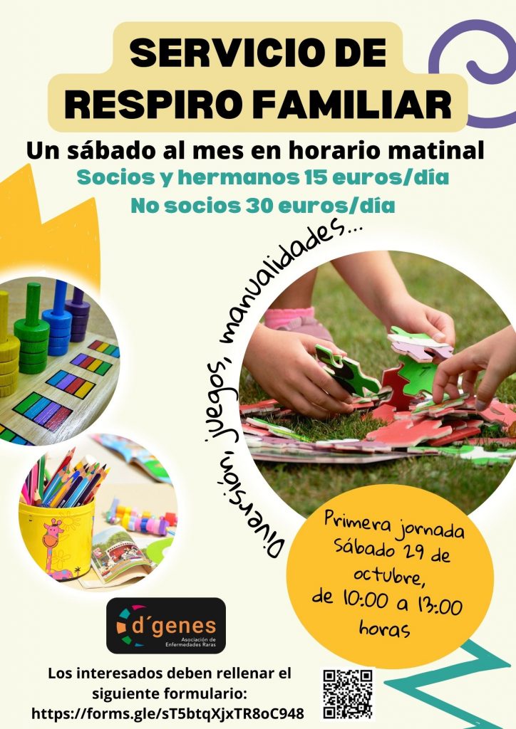 La Asociación de Enfermedades Raras D´Genes va a poner en marcha un Servicio de Respiro familiar un sábado al mes en horario matinal en sus centros y delegaciones.