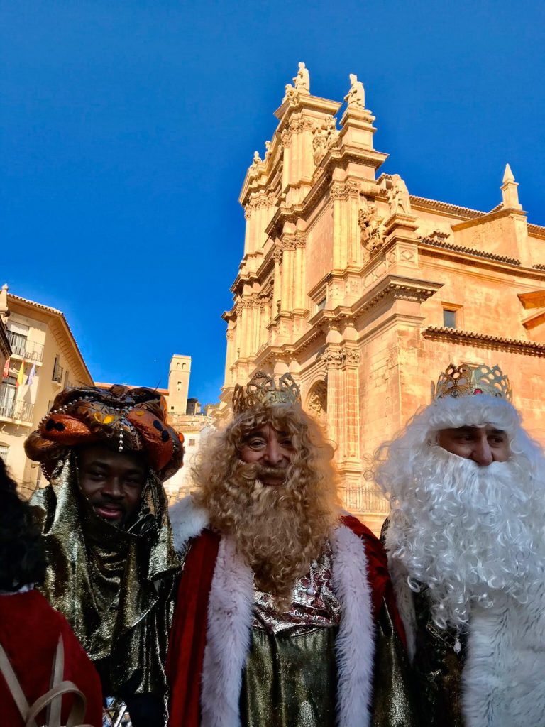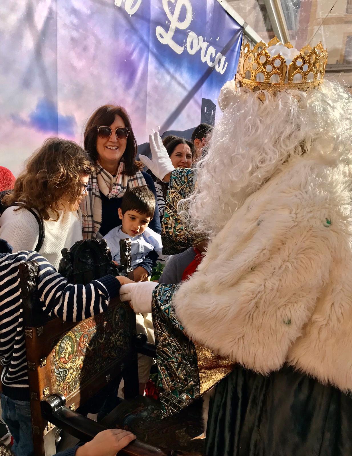 Melchor, Gaspar y Baltasar llegaron a la estación de autobuses Lorca Sutullena al mediodía y realizaron en autocar un primer recorrido por la ciudad. En el ayuntamiento fueron recibidos por el alcalde, Diego José Mateos, y saludaron a los niños que los esperaban en la plaza de España.