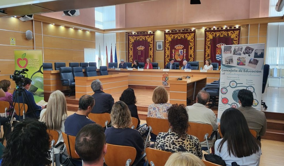 La coordinadora de D´Genes en Molina de Segura, Aziza Aabouche, asistió a la presentación del programa de actividades, que tuvo lugar en el Salón de Plenos del Consistorio, con la presencia del alcalde de Molina de Segura, José Ángel Alfonso, la concejala de Educación, María Hernández, el director gerente de Ribera Hospital de Molina, Pedro Hernández, la coordinadora del Centro de Salud Antonio García García, María Dolores Esteve, la coordinadora del Centro de Salud Jesús Marín López, Mercedes Tárraga, la coordinadora del Centro de Salud Andrés López Bernal, Concepción Navarro, y el director del CEIP El Romeral, Manuel Martínez.