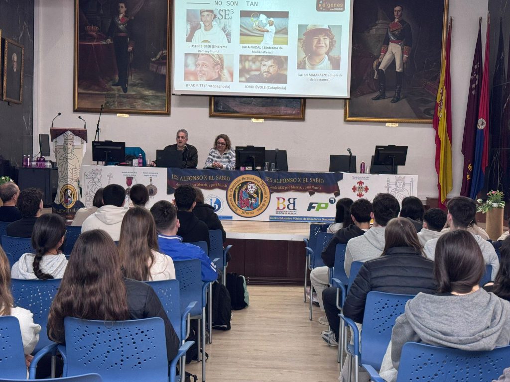 La Asociación de Enfermedades Raras D’Genes ha participado en las Jornadas de Salud y Deporte organizadas por el IES Alfonso X de Murcia, donde impartió una charla de sensibilización dirigida al alumnado de cuatro cursos de Bachillerato.