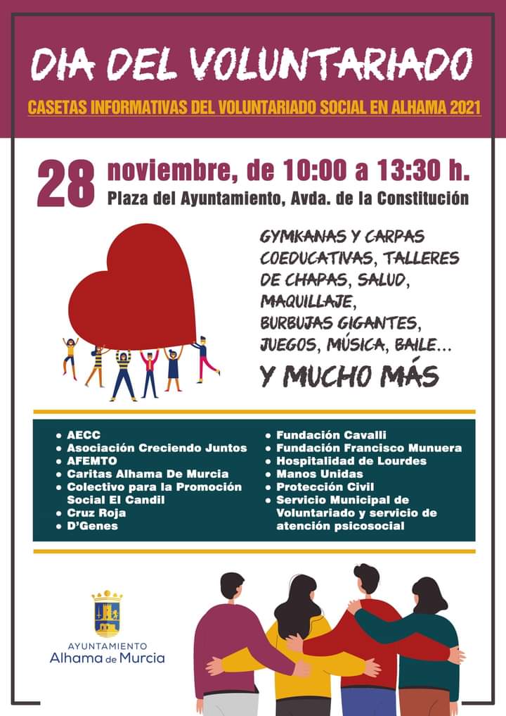 Con estas actividades se quiere celebrar el Día del Voluntariado en Alhama de Murcia, una fecha que se conmemora a nivel internacional el 5 de diciembre.