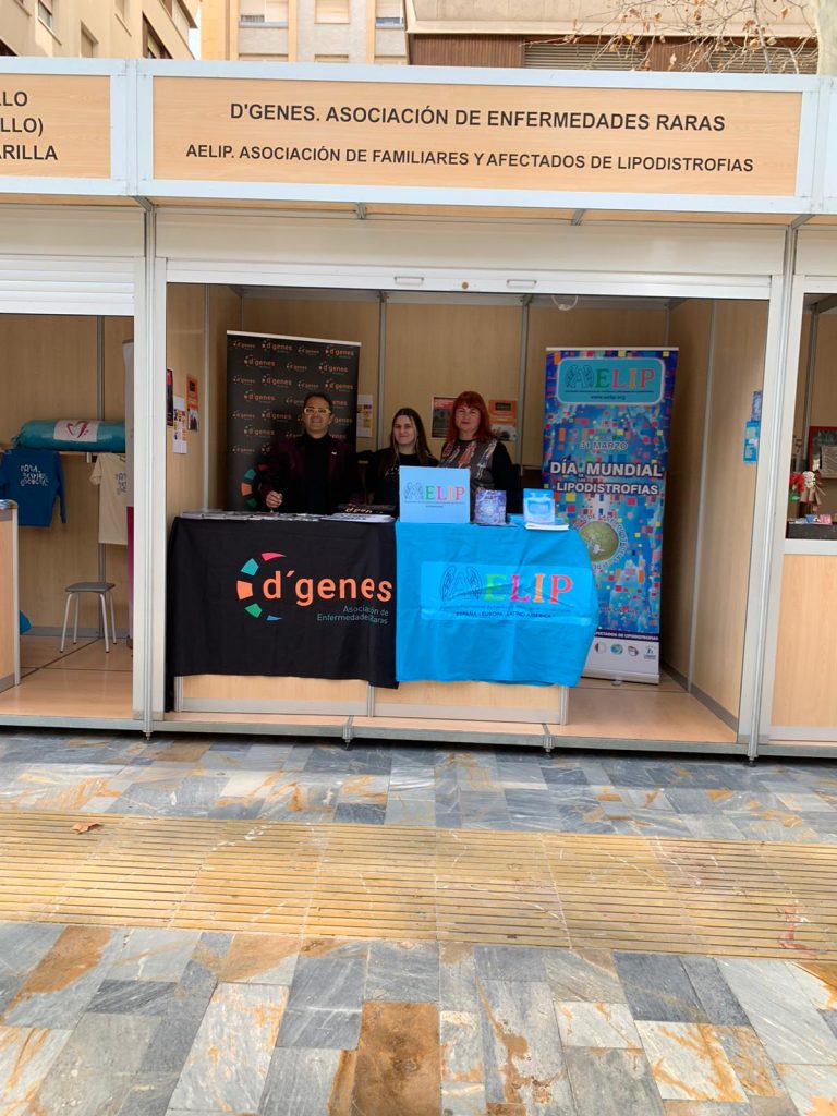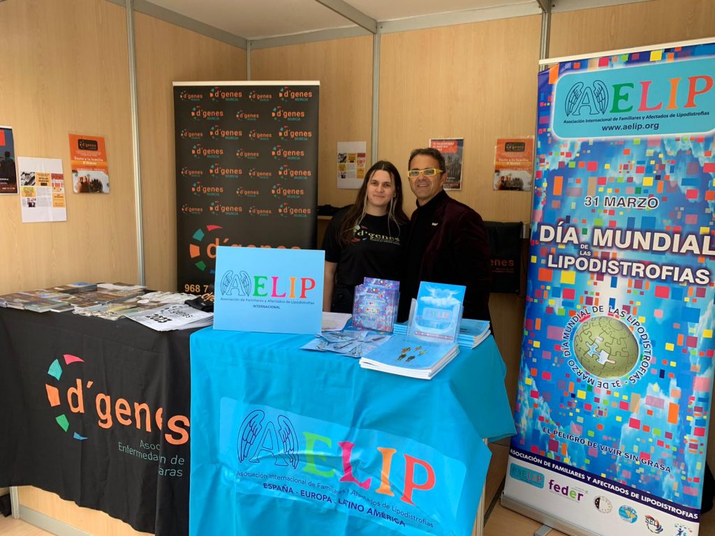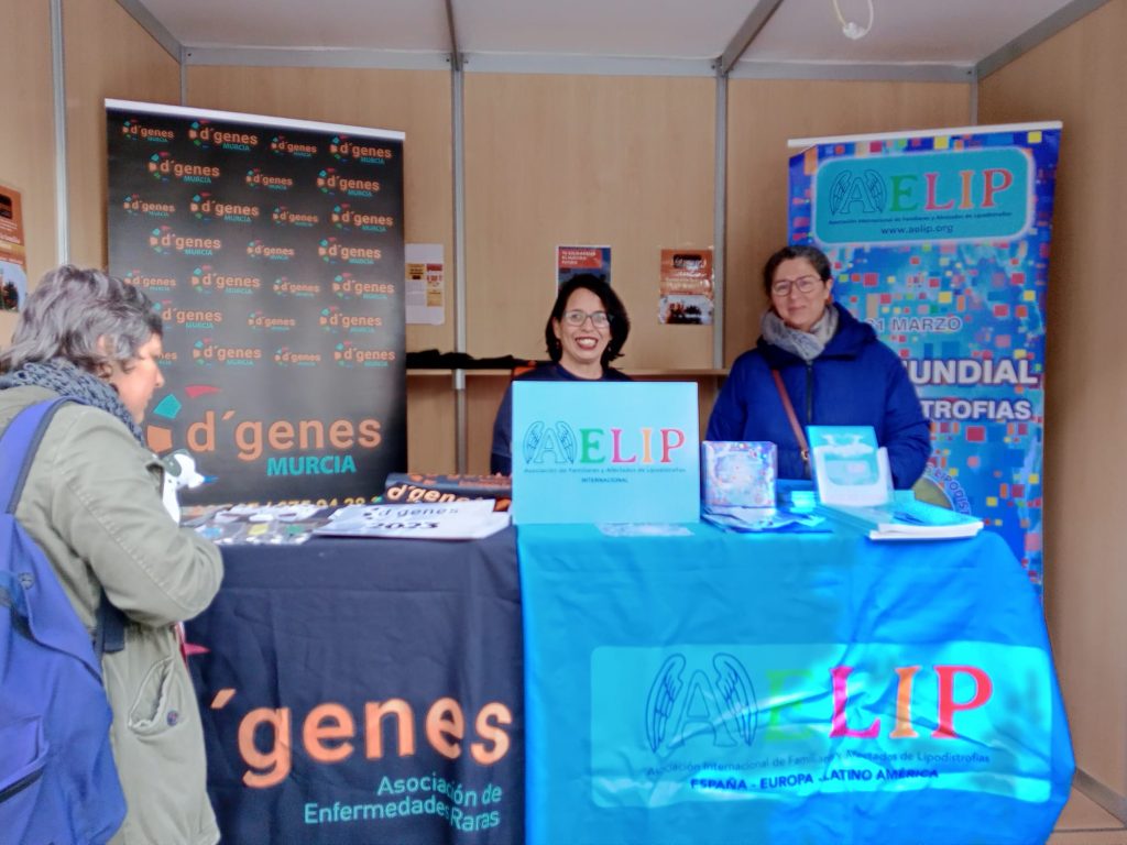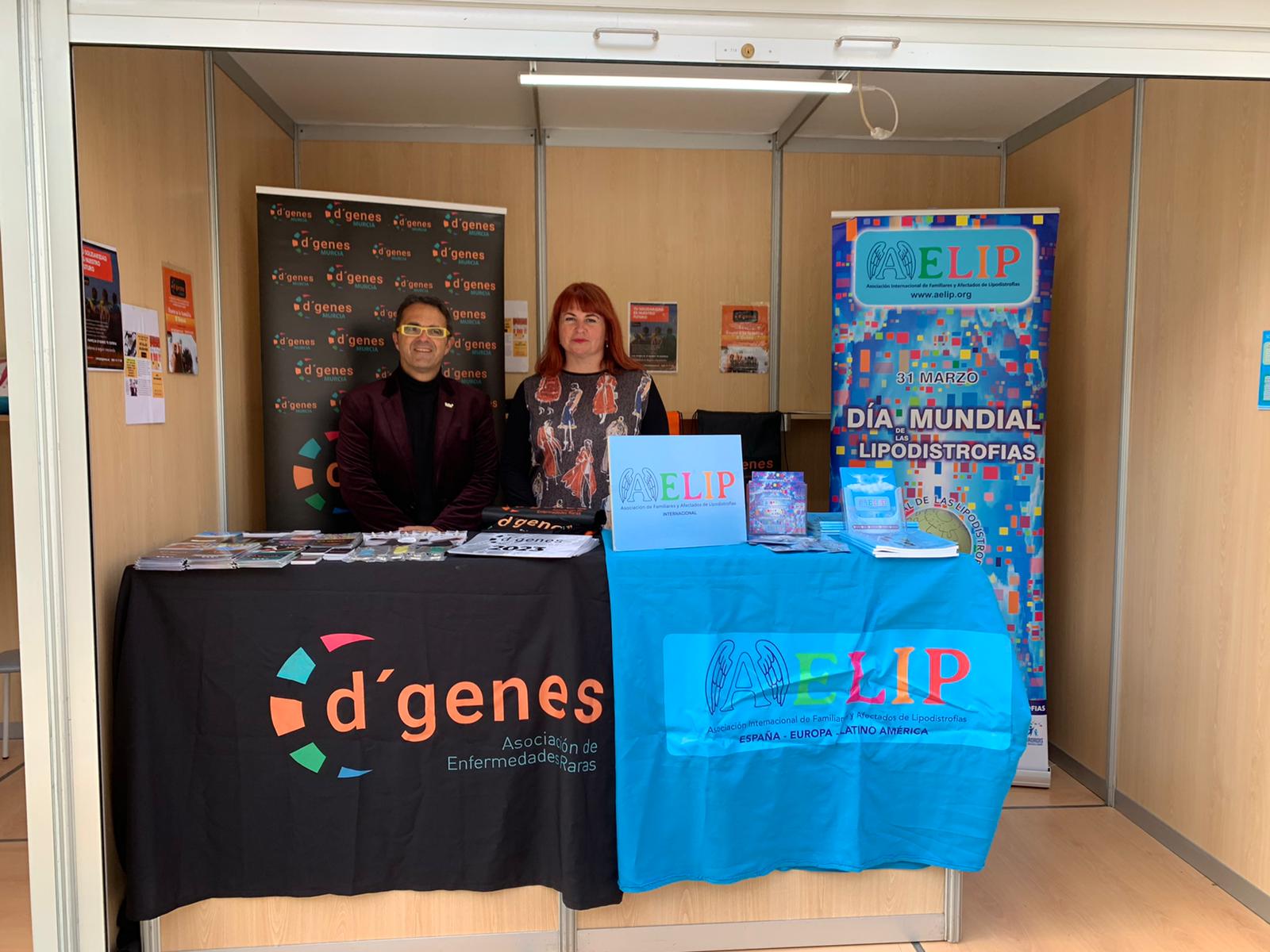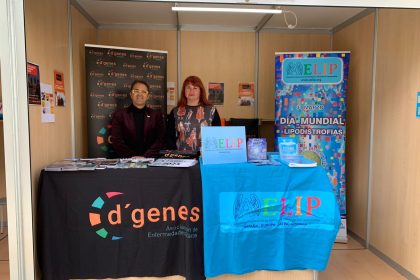 D´Genes compartió con la Asociación Internacional de Familiares y Afectados de Lipodistrofias (AELIP) uno de los expositores, desde el que voluntarios de la entidad ofrecieron información sobre los fines de la misma y la labor que realizan para mejorar la calidad de vida de personas y familias que conviven con una enfermedad rara o sin diagnóstico.