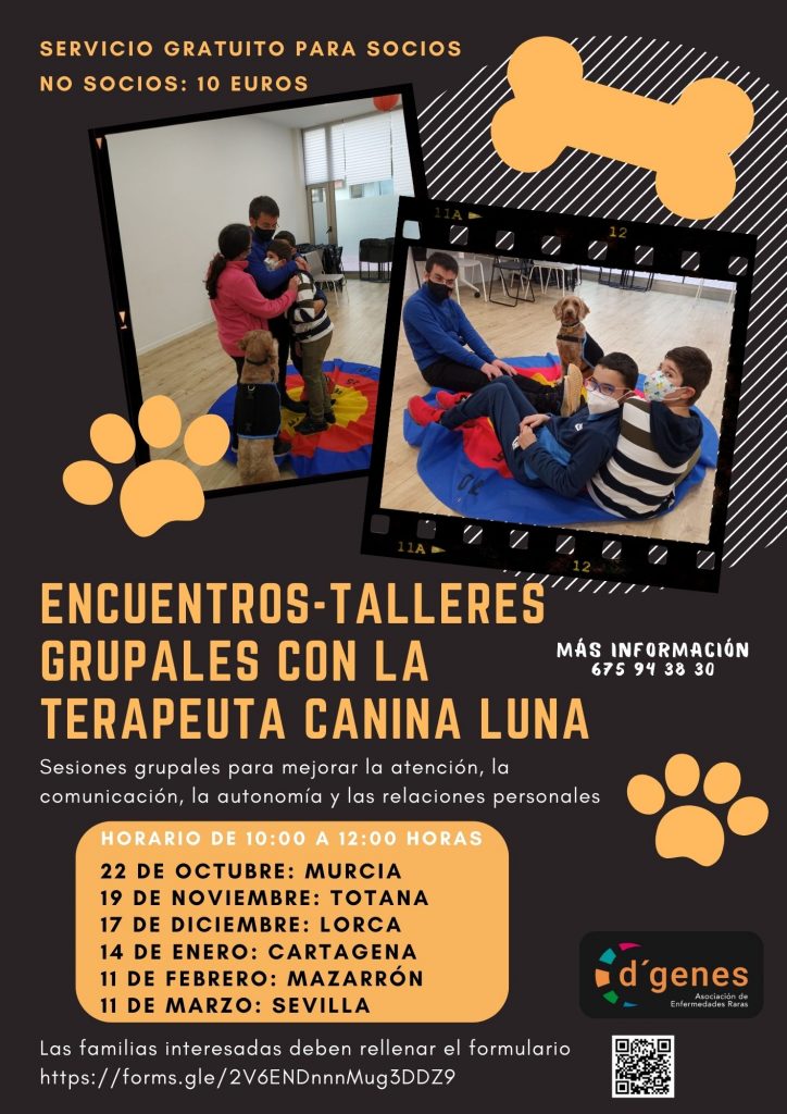 La Asociación de Enfermedades Raras D´Genes va a incorporar a su cartera de servicios de cara al presente curso 2022/2023 un servicio de Encuentros-talleres grupales con la participación de la terapeuta canina Luna.