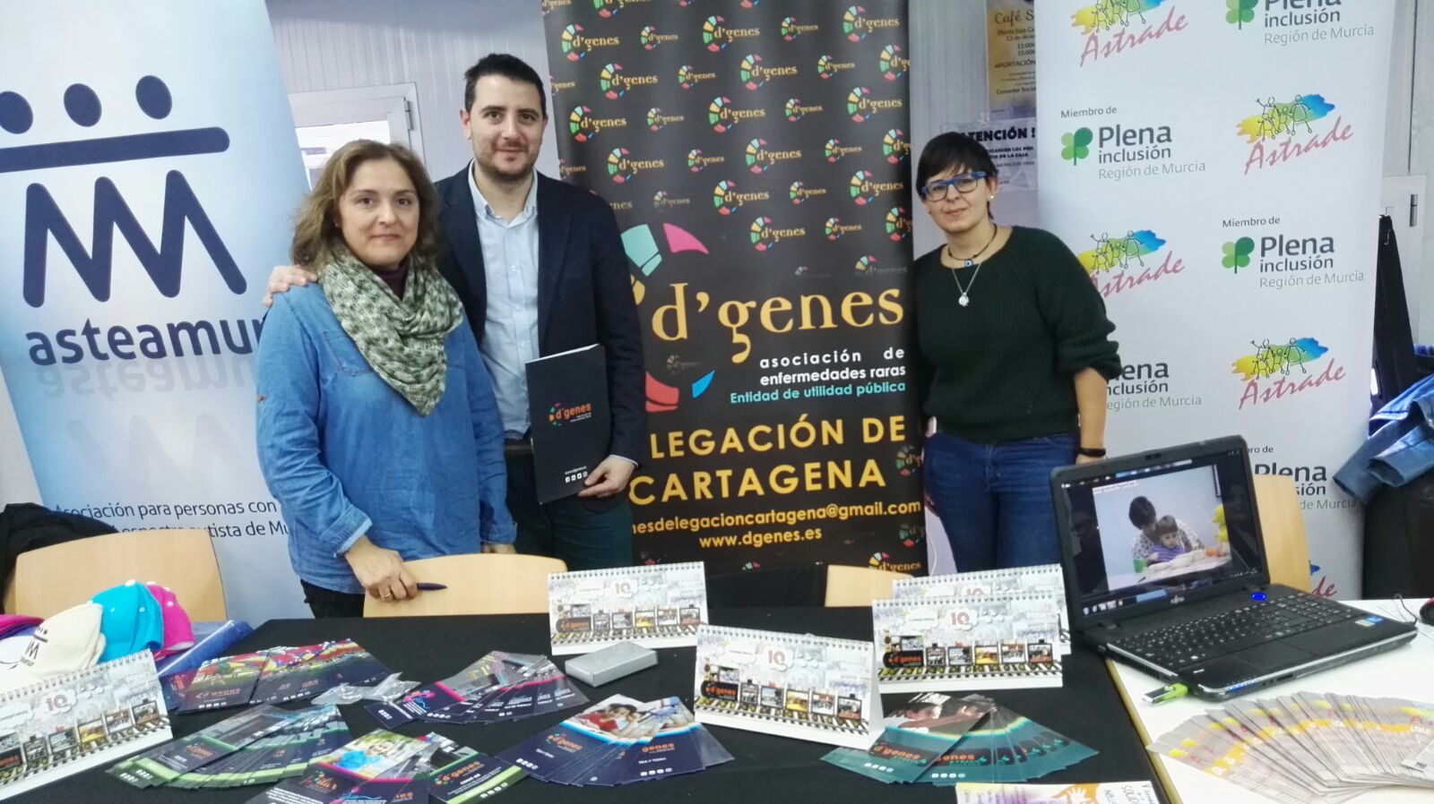La Asociación de Enfermedades Raras D´Genes está presente en las V Jornadas de la Solidaridad y la Inclusión Social que se celebran hoy en Cartagena, organizadas por la Universidad Politécnica de Cartagena y la Casa del Estudiante. El director de D´Genes, Miguel Ángel Ruíz, y la técnico de la asociación Encarna Bañón, han asistido a este encuentro.