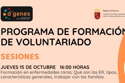 La Asociación de Enfermedades Raras D´Genes ha programado un ciclo de formación dirigido a voluntarios y personas interesadas en colaborar con la asociación.