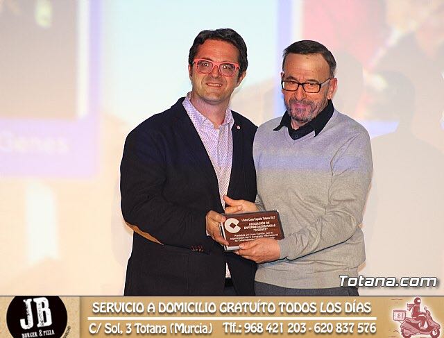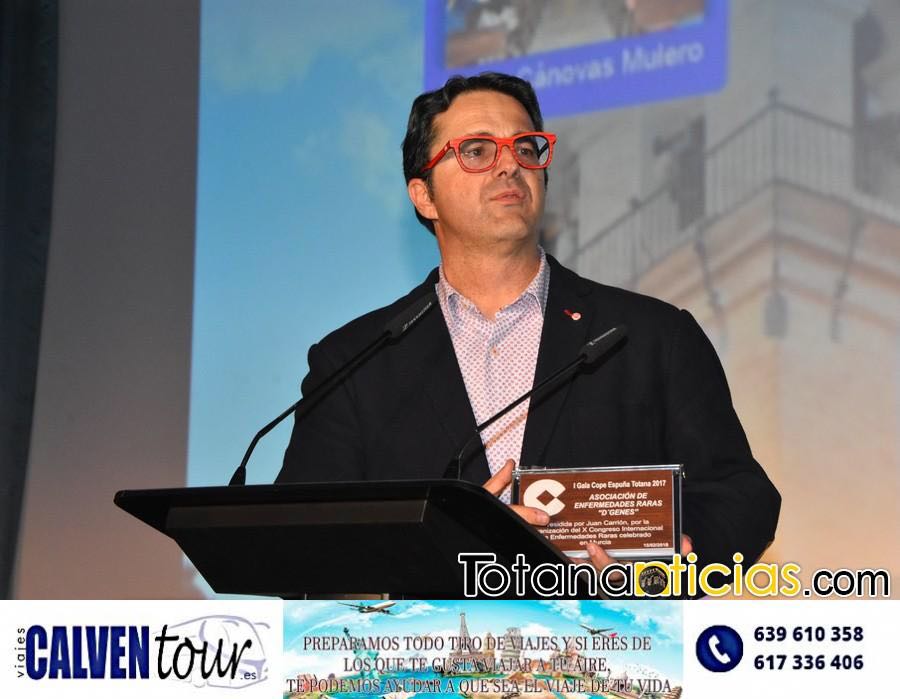 El presidente de D´Genes, Juan Carrión Tudela, asistió a la I Gala Cope Espuña «Los mejores momentos de Totana 2017» y recogió el galardón de manos de Ginés Carreño.