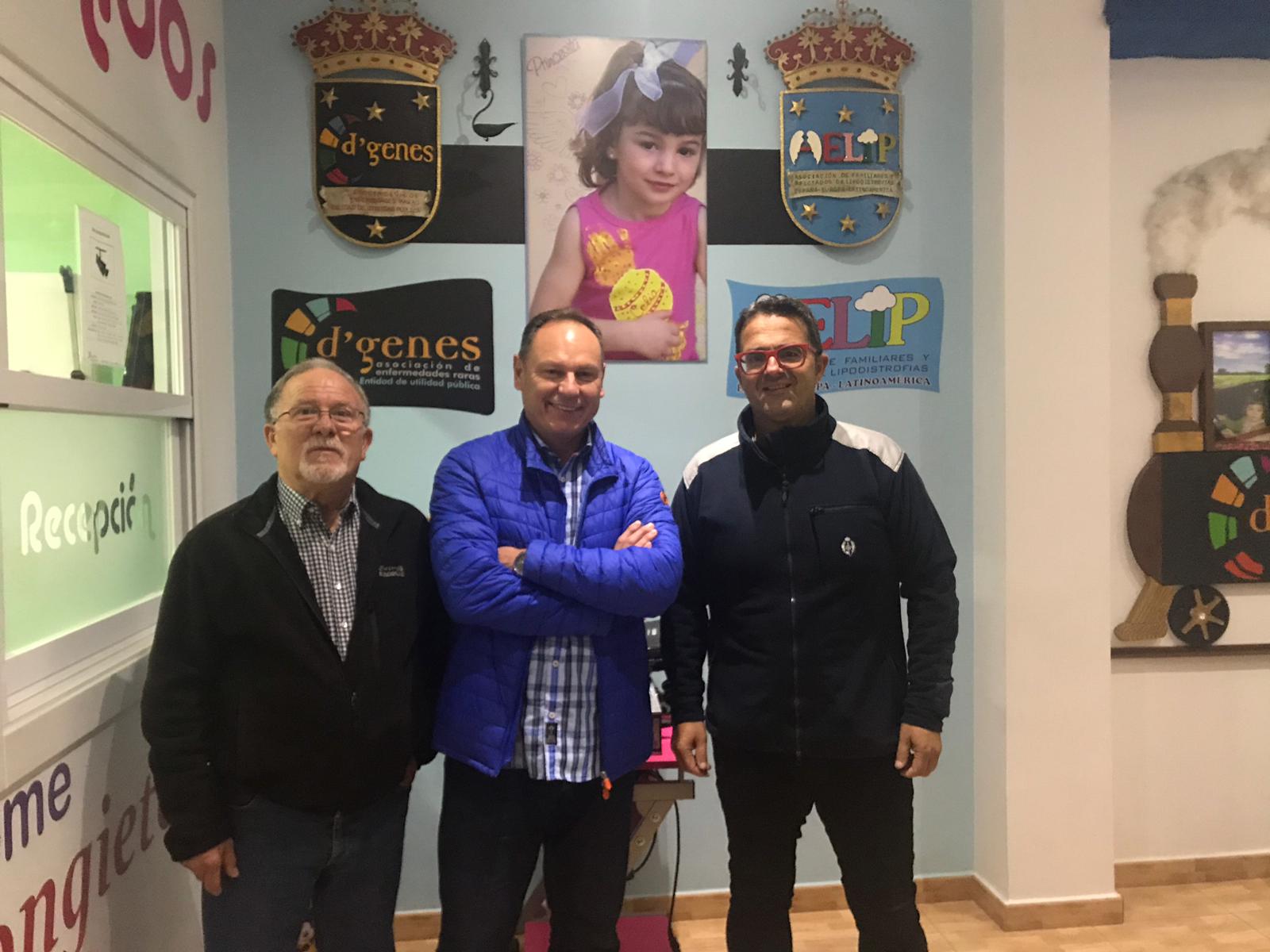 El presidente de D’Genes, Juan Carrión, se ha reunido con Isidro Benítez y Javier Velasco, miembros de AeroTotana, y trabajaron en el desarrollo del proyecto que desean implementar a lo largo del próximo mes de diciembre y que posibilitará que niños y adultos con enfermedades raras y sin diagnóstico puedan conocer el aeródromo de Totana así como disfrutar de paseos en avión.