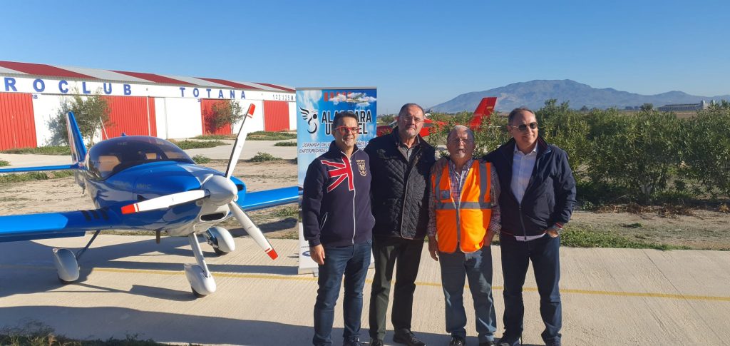 Esta iniciativa, que tendrá lugar el próximo 15 de diciembre en las instalaciones del Aeroclub Totana, ha sido presentada por el presidente de D’Genes, Juan Carrión; los miembros de Aeroclub Totana Isidro Benítez y Javier Velasco; y el alcalde de Totana, Juan José Cánovas.