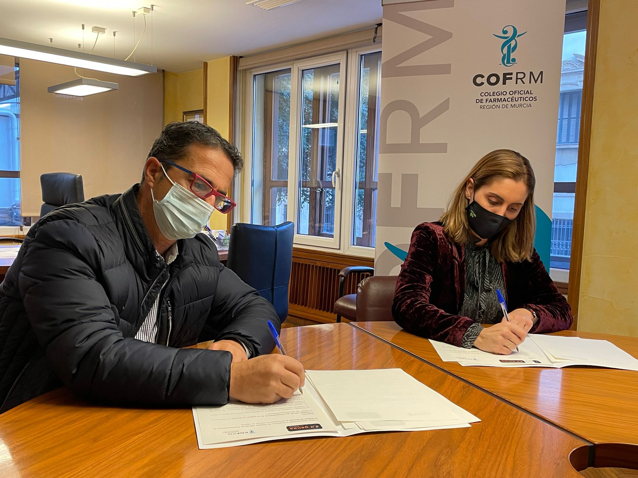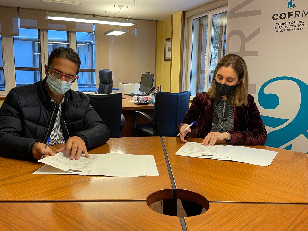 La presidenta del Colegio Oficial de Farmacéuticos de la Región de Murcia (COFRM), Paula Payá y el presidente de la Asociación de Enfermedades Raras D’Genes, Juan Carrión, han firmado un acuerdo que les permitirá desarrollar de forma conjunta campañas de captación de fondos para apoyar proyectos y la cartera de servicios que desarrolla la asociación con el fin de mejorar la calidad de vida de las personas que conviven con enfermedades raras.