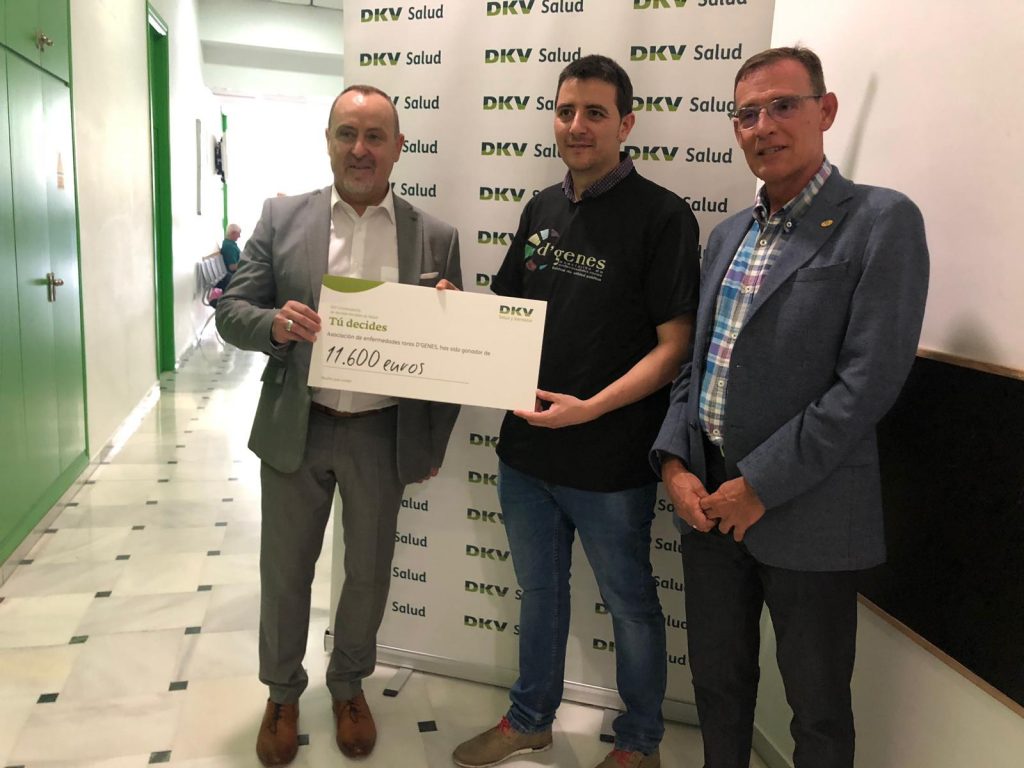 El proyecto «Atención psicosocial para pacientes de cuidados paliativos pediátricos y sus familias» de la Asociación de Enfermedades Raras D’Genes ha sido uno de los beneficiados de la XIV Convocatoria de Ayudas Sociales de Salud de DKV y ha recibido una donación por parte de la aseguradora de 11.600 euros.