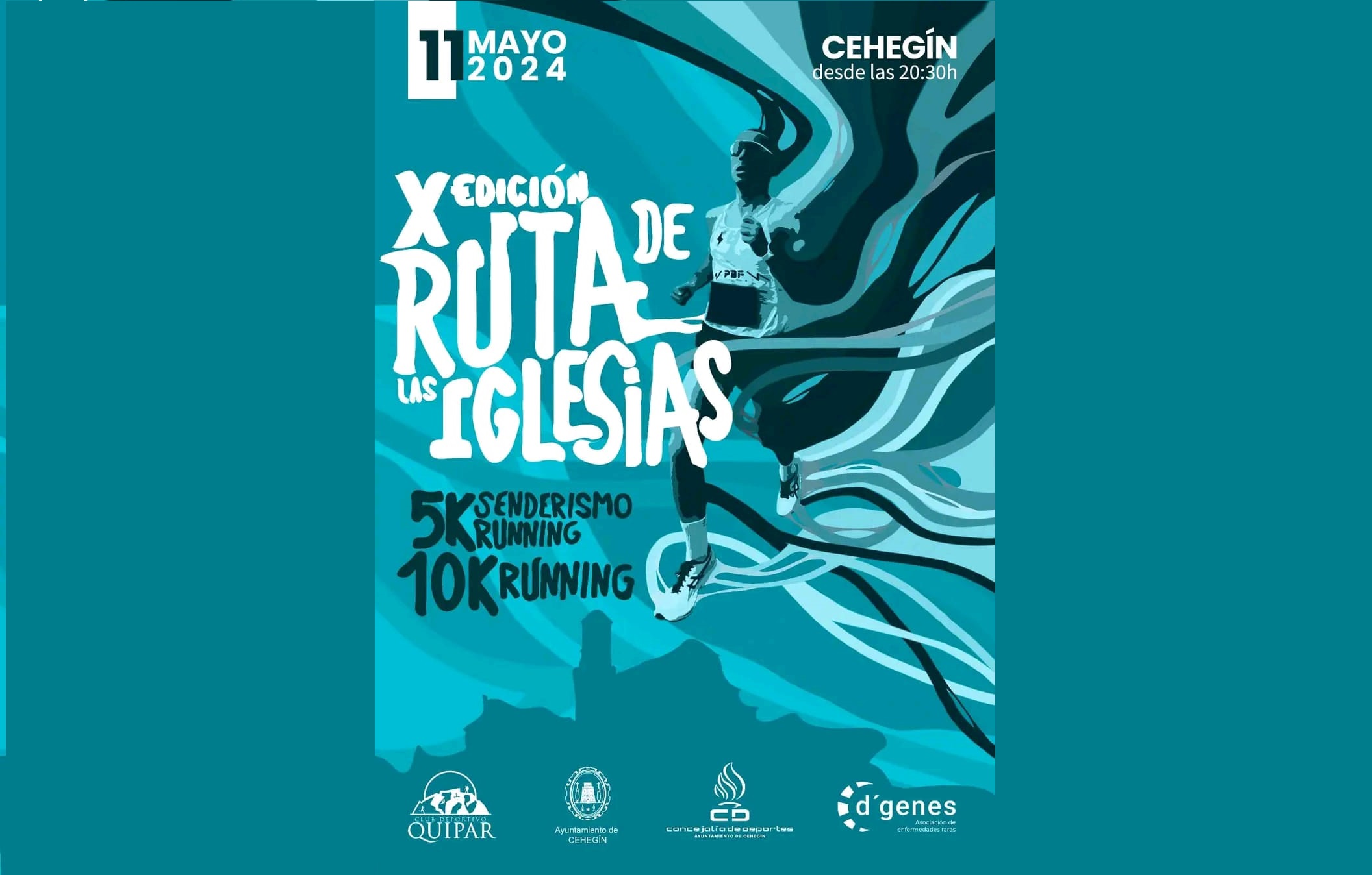 El próximo 11 de mayo tendrá lugar en Cehegín la X Ruta de las Iglesias, organizada por el Club Deportivo Quípar y que cuenta con la colaboración del Ayuntamiento de Cehegín. Esta nueva edición de esta cita deportiva será a beneficio de la Asociación de Enfermedades Raras D´Genes.