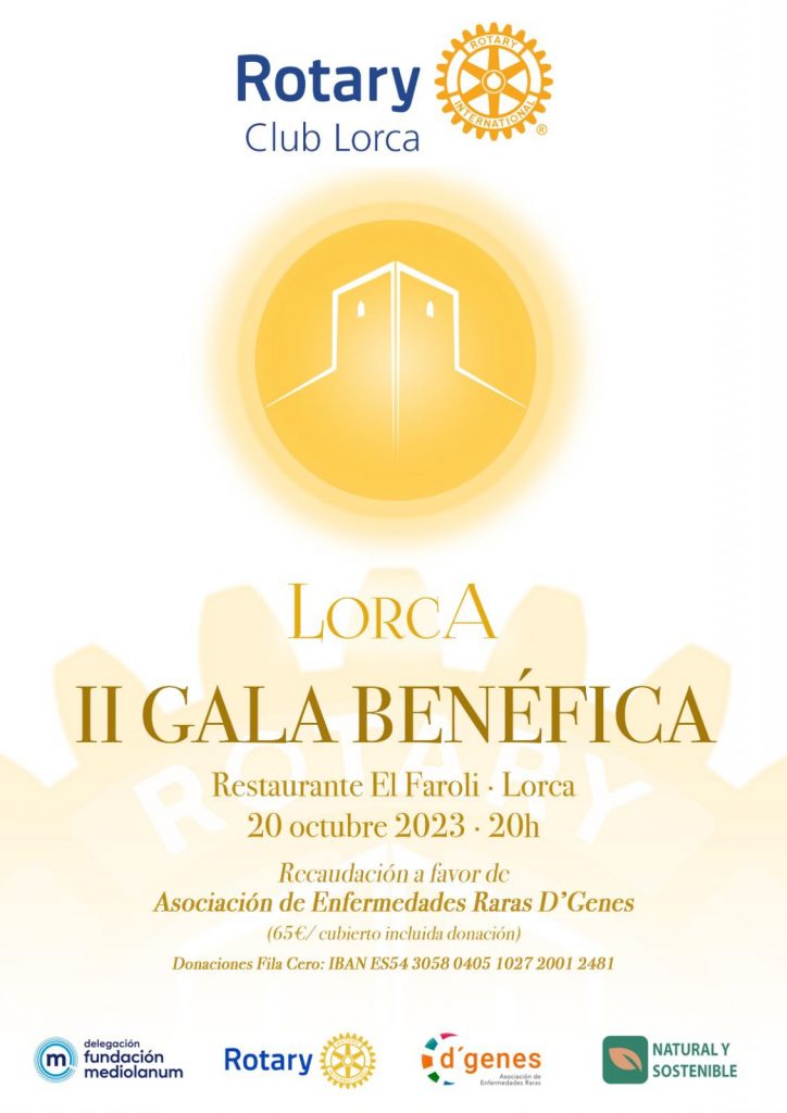 El próximo 20 de octubre se celebrará la II Gala Benéfica organizada por el Rotary Club Lorca, a beneficio de la Asociación de Enfermedades Raras D´Genes.